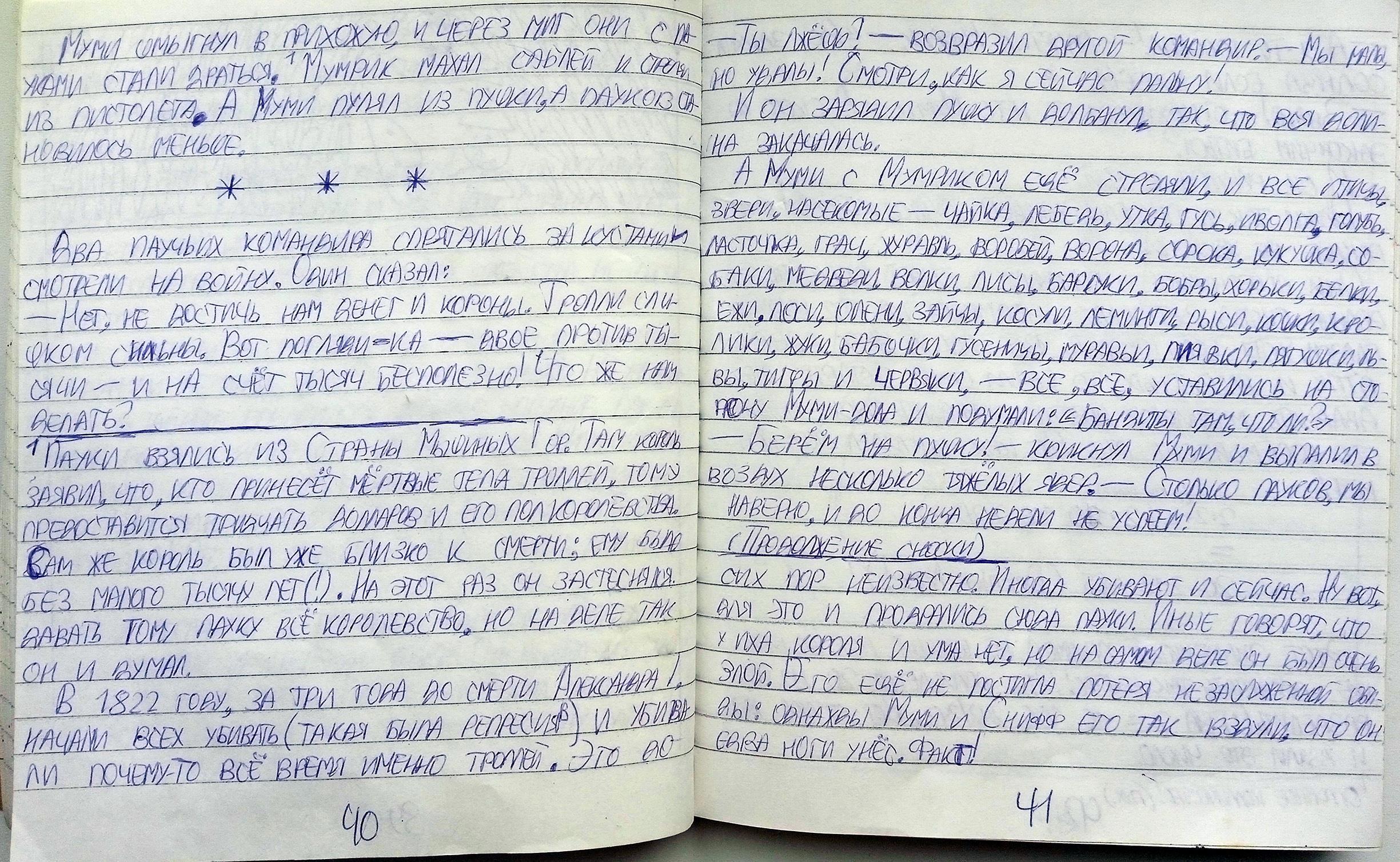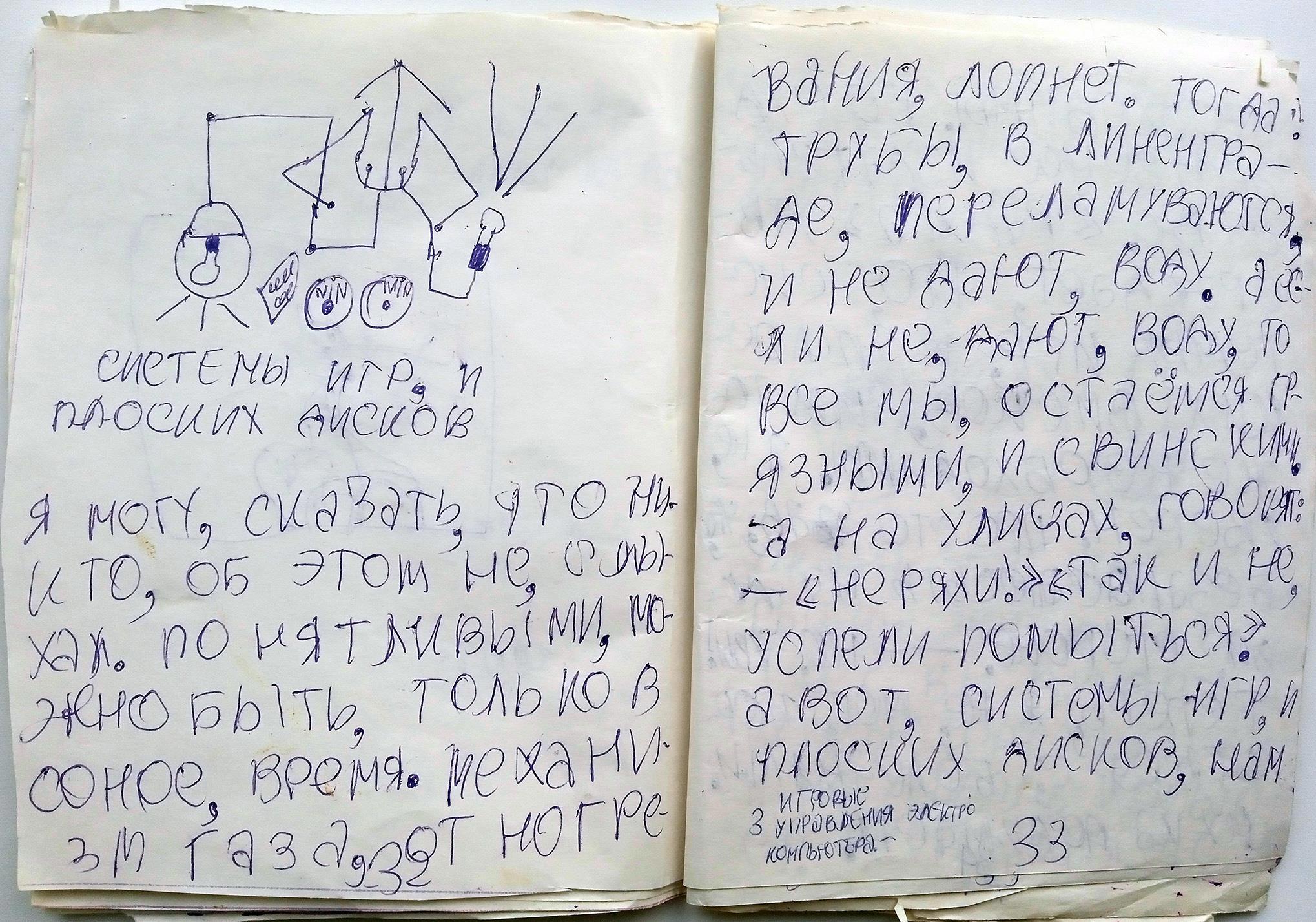 Но за спиной в это время стояла моя мама. Как многие мамы, она считала, что игры — это бестолковый «трах-бабах», который делает бестолковых детей еще бестолковее, и ничего больше. Мне было до ужаса обидно не только это, но и то, что взрослые по предубеждению лишали самих себя такого необыкновенного опыта, таких ярких переживаний. «Неужели нельзя поделиться этим сюжетом так, чтоб было понятно?» — подумал я и предпринял попытку новеллизировать игру: сшил несколько тетрадок и вдохновенно взялся за дело.