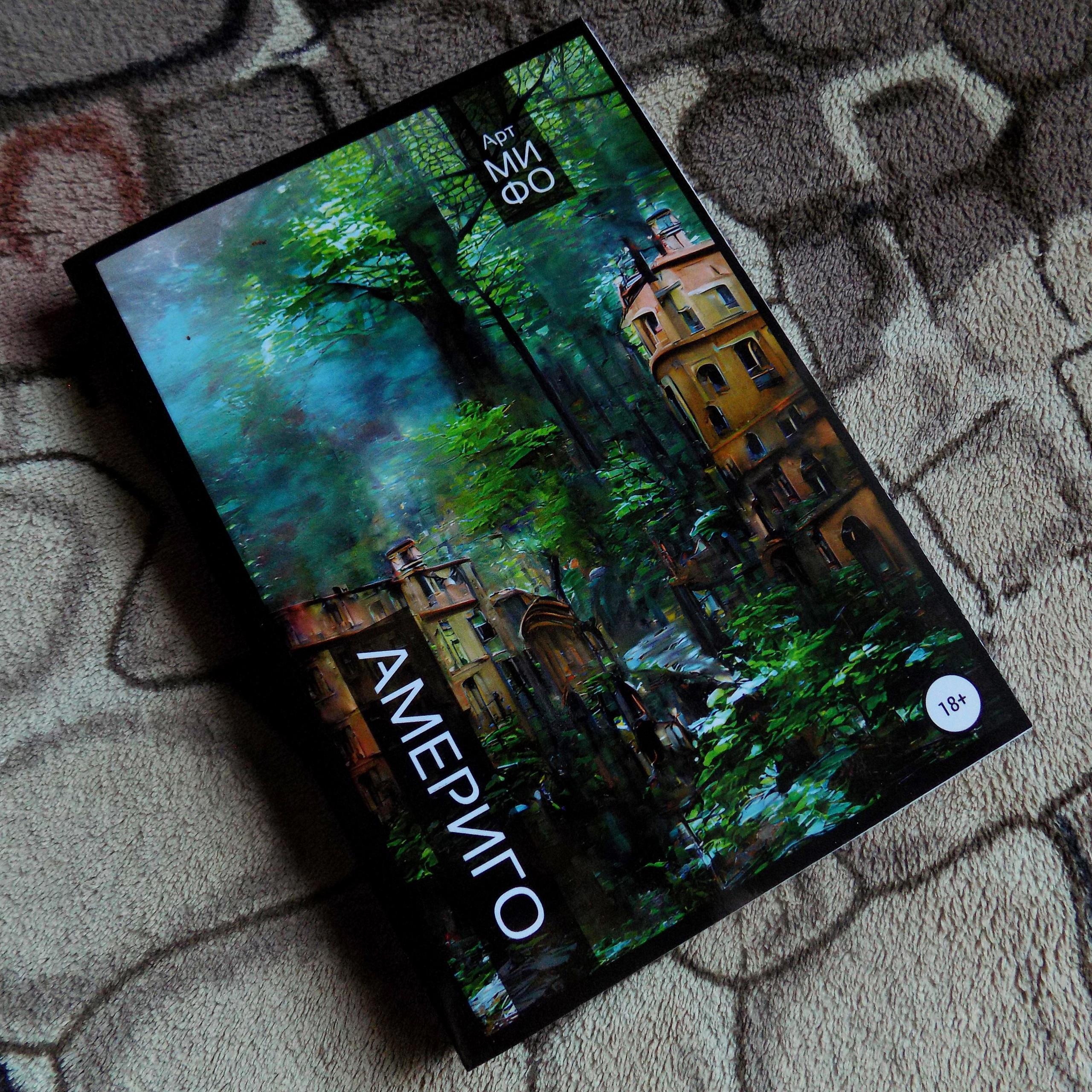 Эта обложка, отвечающая сюрреалистическому настроению книги, была сделана c помощью приложения Dream от WOMBO, когда генерация картинок по описанию была еще в диковинку. Сейчас такой результат впору сравнить с наскальной живописью. Знаю, что вы думаете!