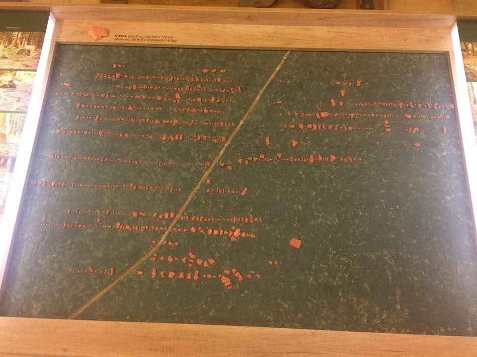 Макет соответствует площади 11 гектаров. Пятидесяти - аж шестидесятисантиметровой высоты камни распределены в 14 рядов. Ряды длиной от 50 до 350 метров, расстояние между рядами от 11 до 18 метров. В начале 80-х лет 19-го столетия камней было 2240 (в Чехии всё посчитано)-