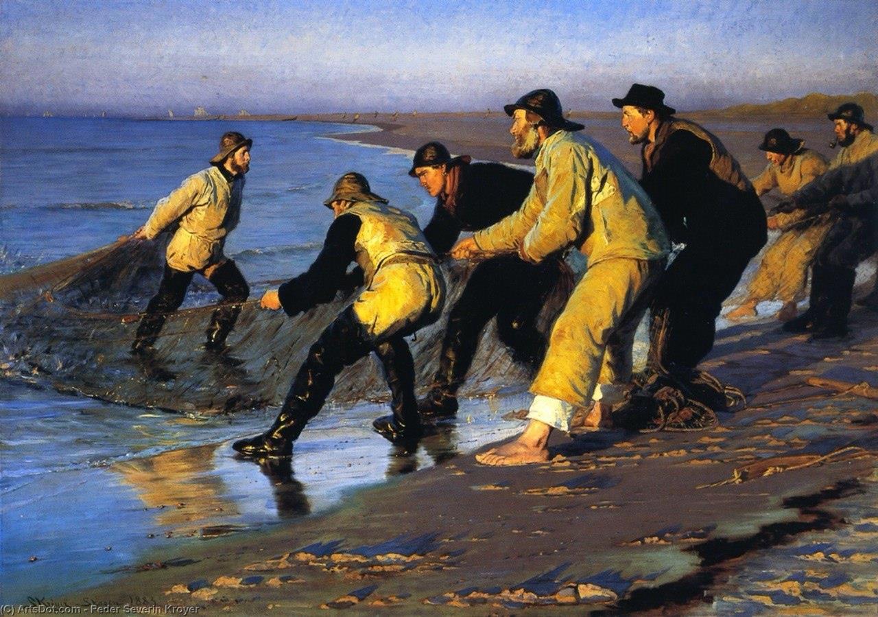 Педер Северин Кройер, "Рыбаки вытягивают сеть на северном берегу Скагена"