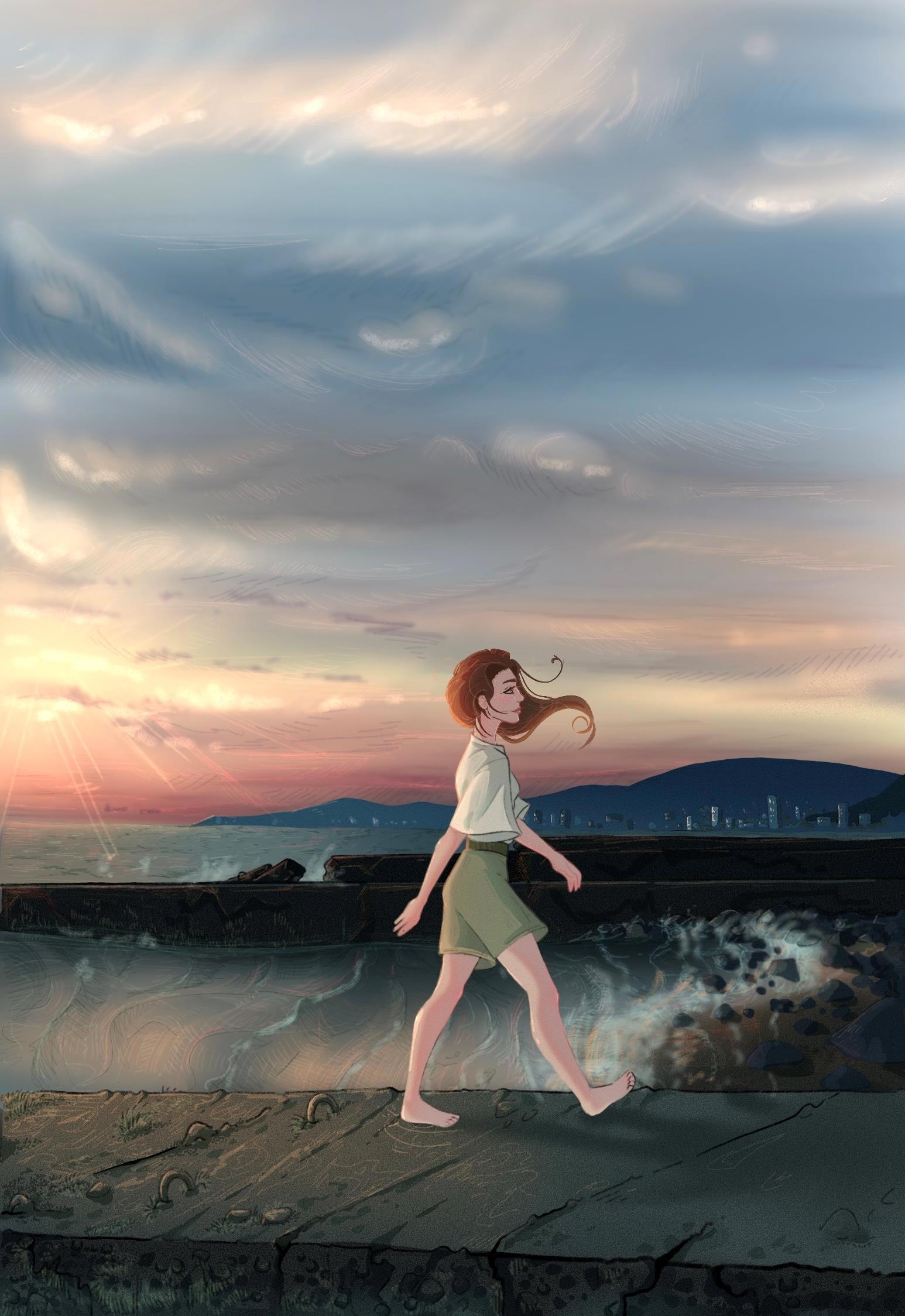 Есть ещё морской пейзаж, нарисовано по реальному пляжу Адлера. Участвовала в зине про разные города России(сборник иллюстраций по сути)