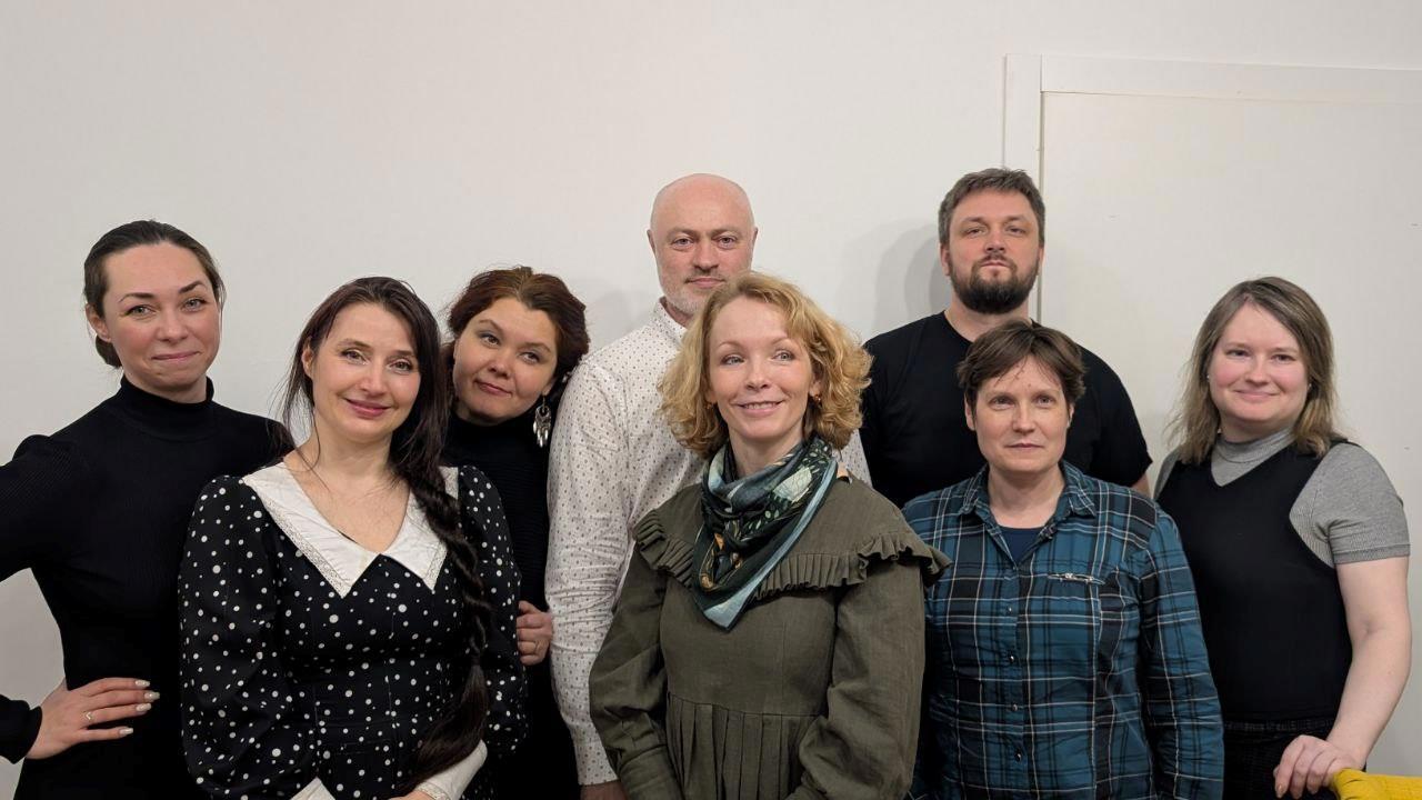 С подругами-литераторшами. Когда-то, больше десяти лет назад, мы все вместе учились у Дмитрия Вересова, а дружим до сих пор.