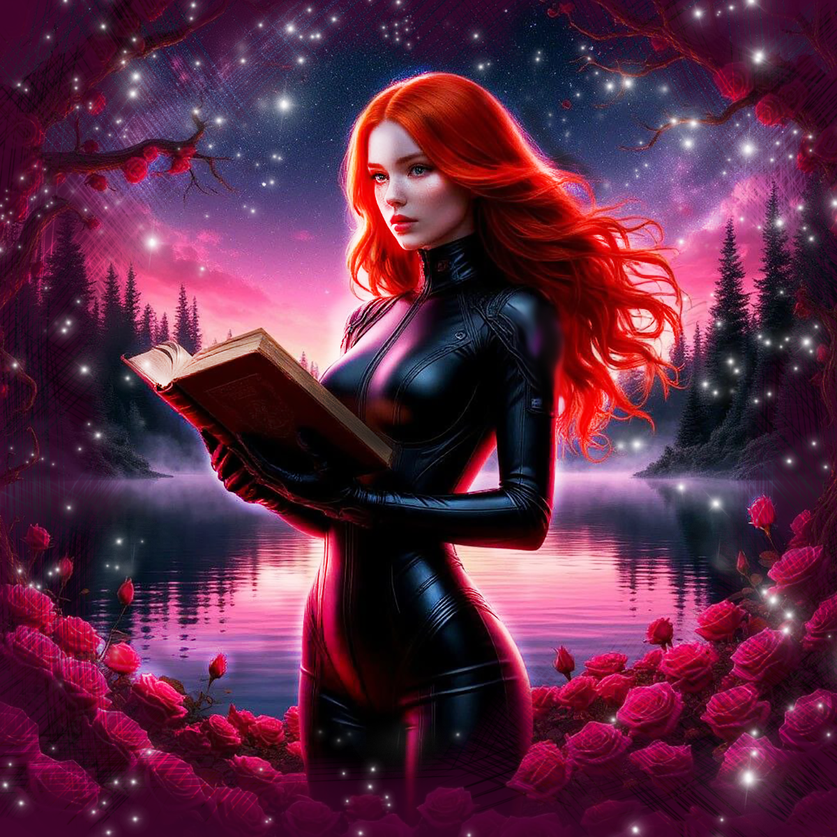 К сожалению, показать вам саму работу я не могу по ряду причин. Но с удовольствием поделюсь референсами, которыми вдохновлялась (нагенерила) в процессе создания обложки. Возможно, они дадут вам представление о том, какой путь прошла эта работа от замысла до реализации.