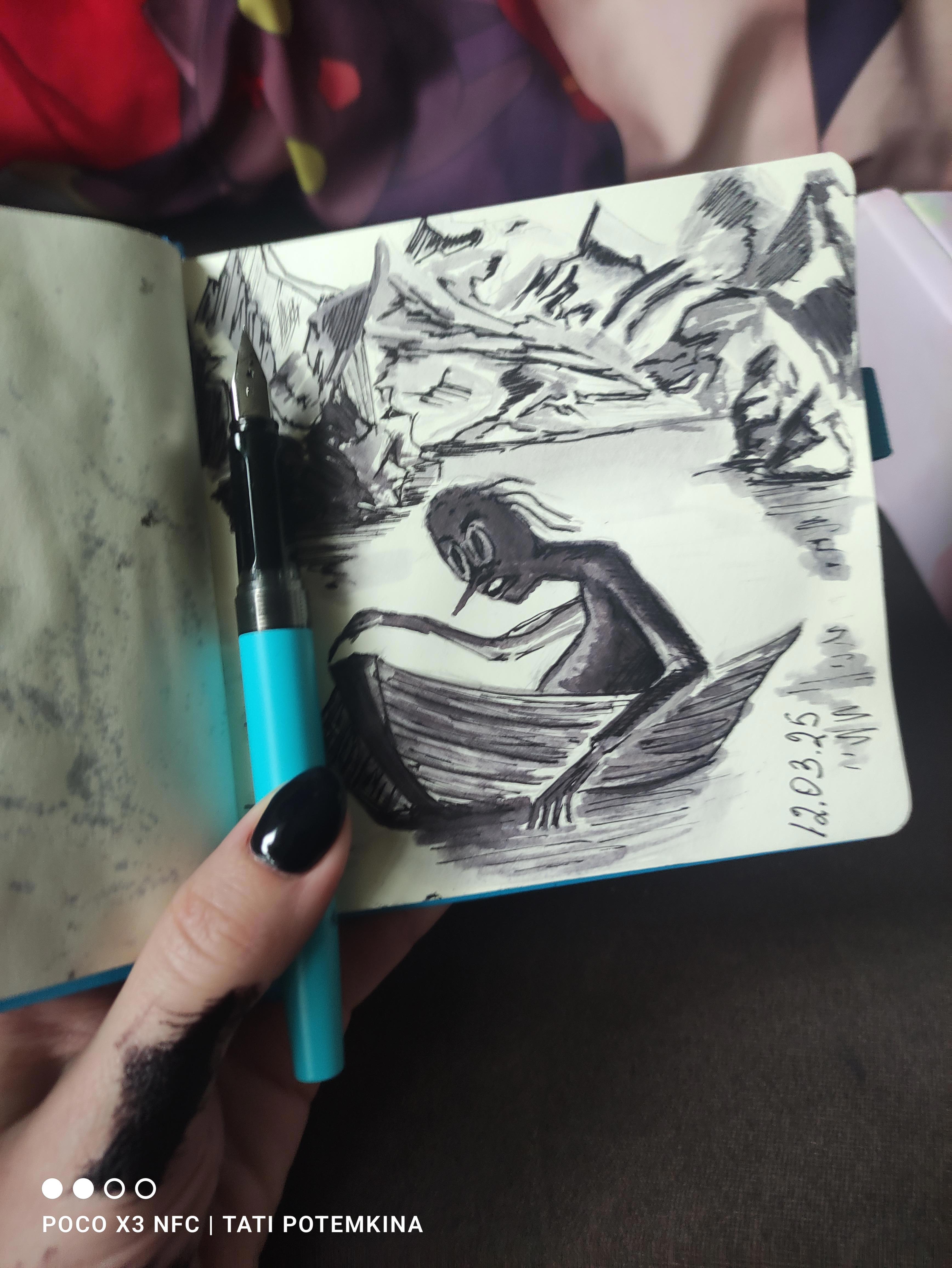 Автор: Tati_PotemkinaПродолжаю преследовать. Не помню какой там день. Слово горизонт. Особо идей не было, но нашла прекрасный референс. Иллюстрация из книги "Хоббит"