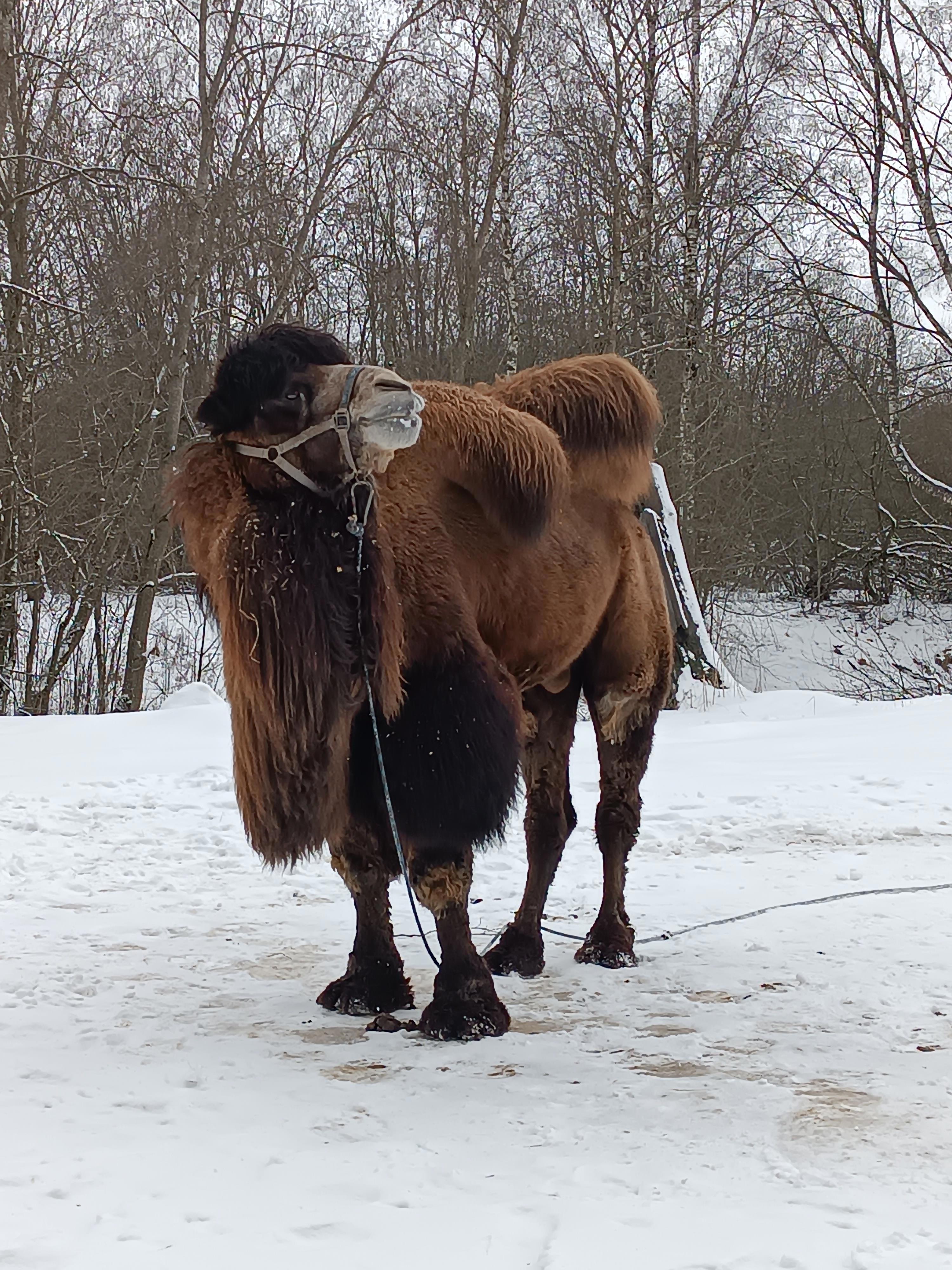 Верблюд штука здоровенная, если кто вблизи не видел. И издает очень забавные щебечущие звуки.