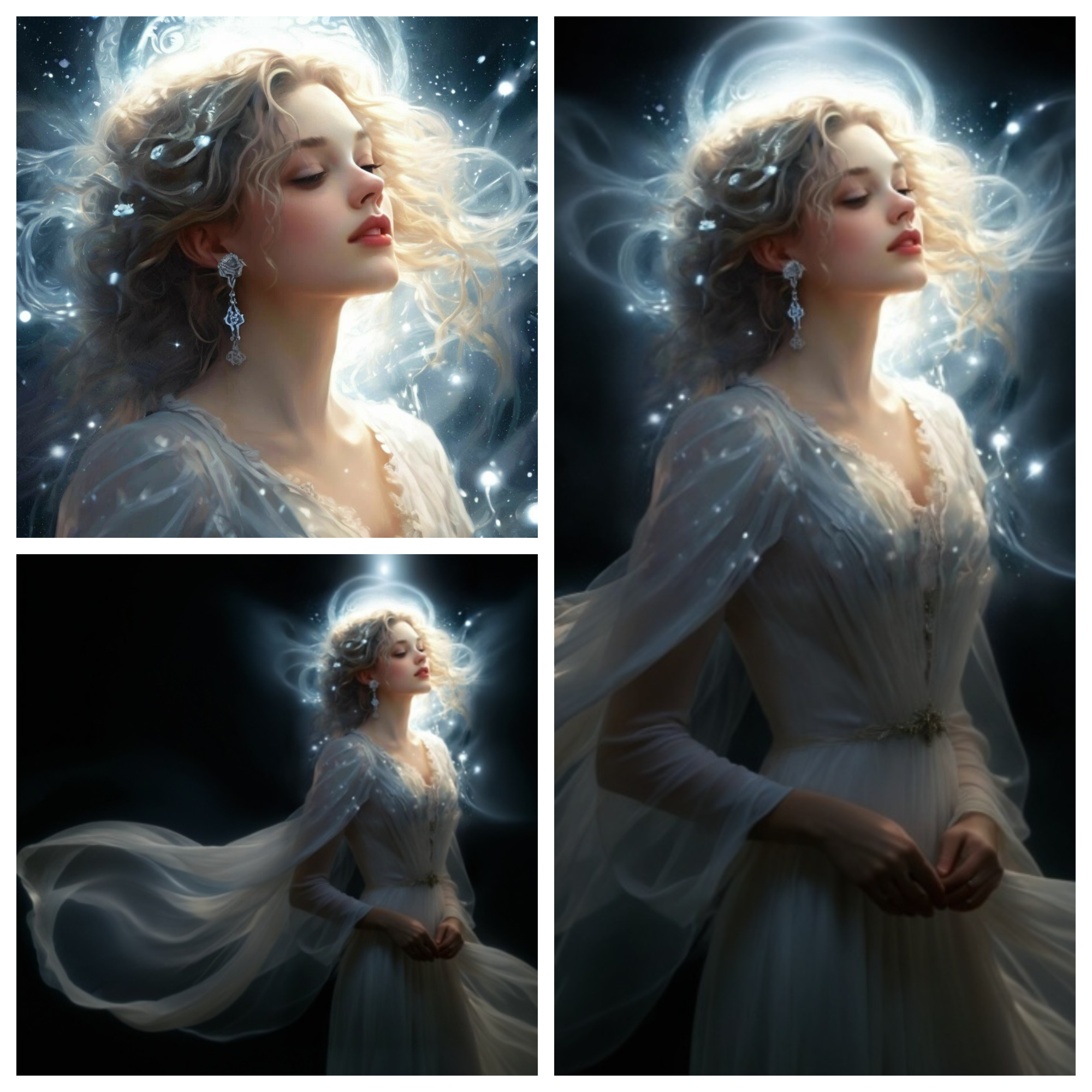 Феора: Женщина в копилке моих артов уже была – создавала её ранее. И я просто расширила арт, сгенерировав ей платье и руки. По сюжету она время от времени левитировала, чтобы лучше контролировать своих подопечных и поле боя, поэтому я разместила её выше остальных.