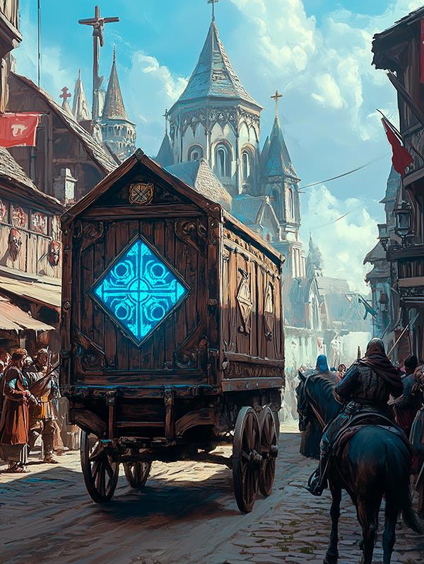 Под охраной целой сотни святороков возок Владыки въезжал в арку северных ворот Тиховодья. Благодаря такому внушительному сопровождению, епископ не опасался нападения железодеев. Сотня святых воинов способна принудить любое княжество к послушанию и легко справится с передовыми отрядами дьявольских отродий. По крайней мере, они позволят епископу безопасно уйти в случае чего. Но такая охрана требовалась не только Владыке, но и казне, которая лежала сейчас в возке епископа.