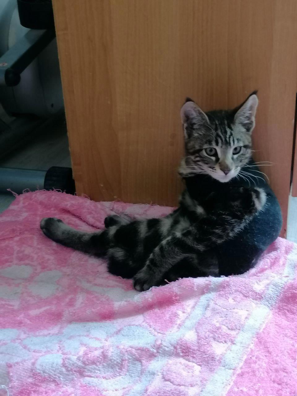 Зато утром Фунтичка уже почти скакал, требовал еду и даже игрался. А еще ходил за мной хвостиком. Привычка бежать ко мне по любому поводу у него с месячного возраста, считает меня большой кожаной двуногой мамой. Рыська у нас сильно болела (подралась с бывшим любовником во время беременности, получила дыру на спине). После родов лечили уже антибиотиками, так что мелкого я выкармливала.