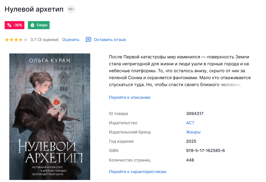 Автор: О. КуранСмотрите, читай-город открыл предзаказ "Нулевого архетипа":