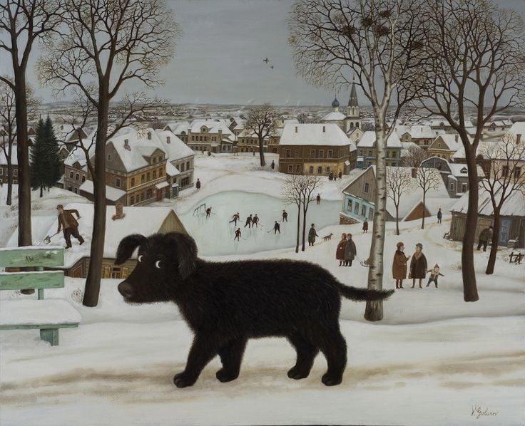 Автор: Ольга ВойлошниковаВы посмотрите, какая прелесть! Какой дивный посыл! И какой милый собакен на переднем плане, пушистый и упитанный.