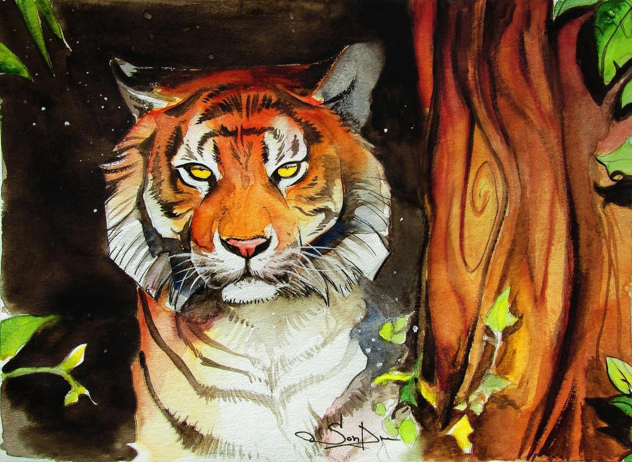 Тигр нарисован в 2014 году (второй рисунок акварелью)