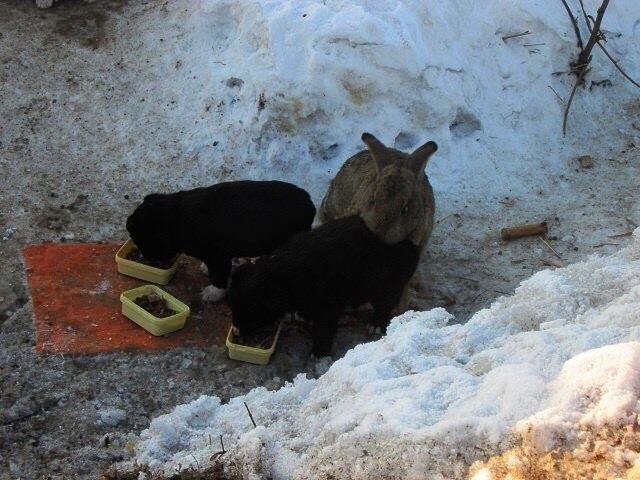 Но вот после нового года, у кролика появилось намного больше забот, так как какой-то неустановленный проезжий водитель выбросил в лесу трех щенят, оставив бедолаг на верную смерть.