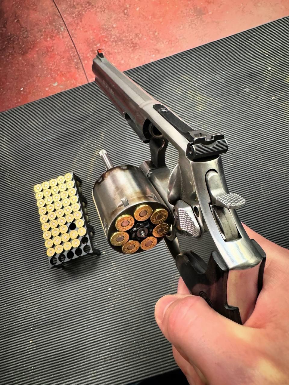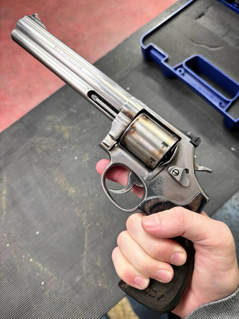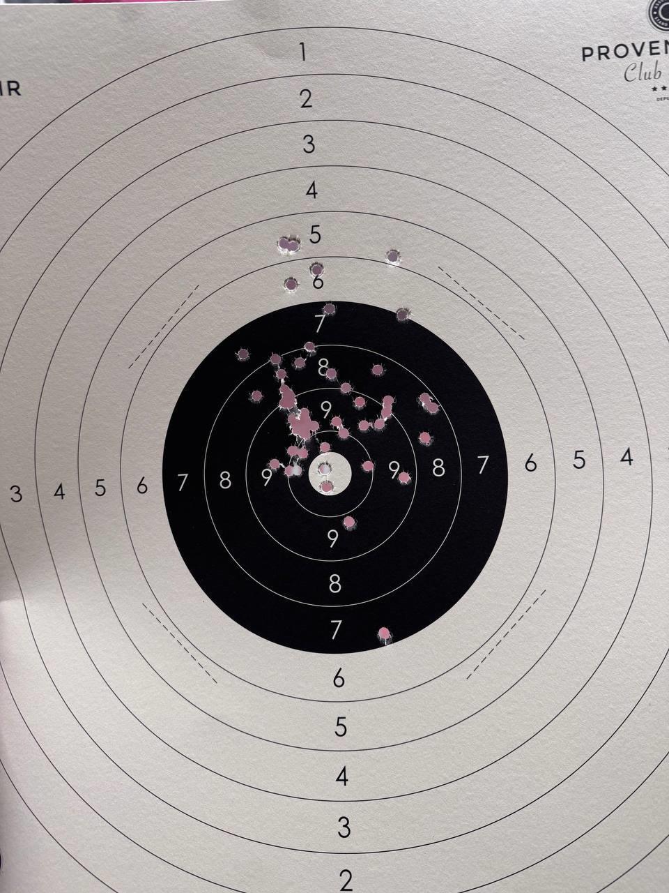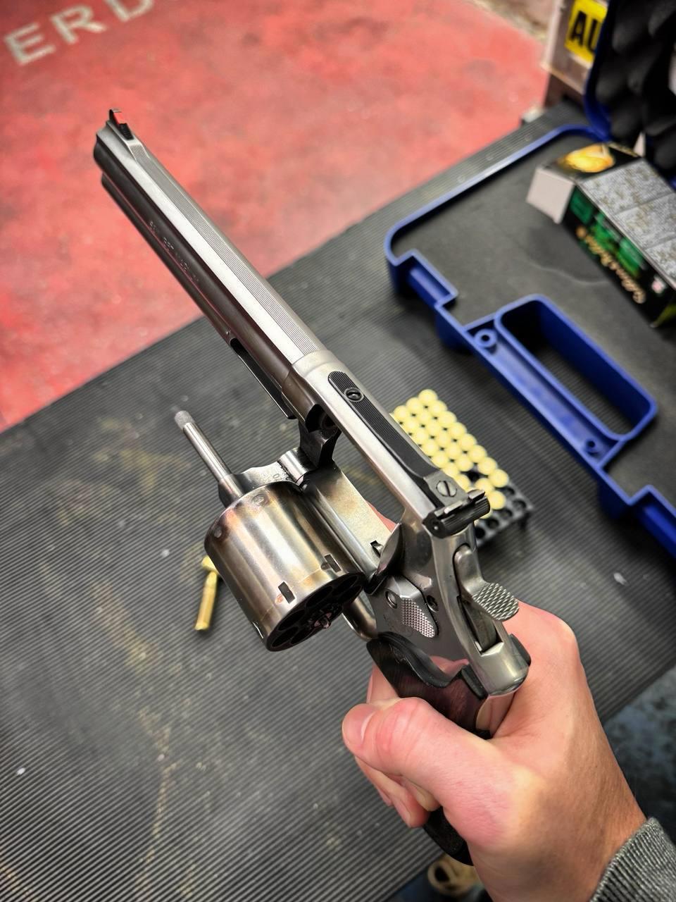 Хорошая вещь смит энд вессон, если каждый раз взводить курок, то очень точный. Первые выстрелы были у меня пристрелочные, и не взводя курок, а потом уже все точно попадал. Если только с этой моделью тренироваться, то результаты хорошие будут. Отдачи почти нет, даже ребенок сможет стрелять, тяжеловат правда, долго не поцелишься.