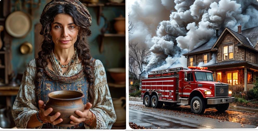 Сестра выключает несчастную кастрюлю, а в это время с улицы слышны сирены и лязг гусениц. Подъехали Пожарные, МЧС и Омон. Ибо младшая из сестер (Девушка) унюхав дым, заперлась с ребенком в спальне и вызвала все данные службы, аргументируя это тем, что какие то террористы подожгли дом. Старшая сестра чтобы прикрыть родных, берет на себя руководство операцией и ведет пожарных, МЧС и прочих альгвазилов проверять мусоропровод. Мама в это время, завернув злополучную кастрюлю в полотенце пробирается сквозь толпу погорельцев. Из дома выходят весело матерящиеся слуги порядка и пообещав приехать когда опять что ни будь загорится стали грузиться в технику и тут началось самое забавное...