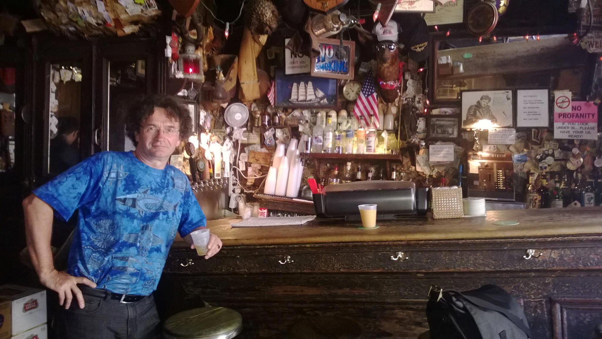 На фото: автор в любимом салуне Джека Лондона "Первый и последний шанс", г. Окленд, США, лето 2014