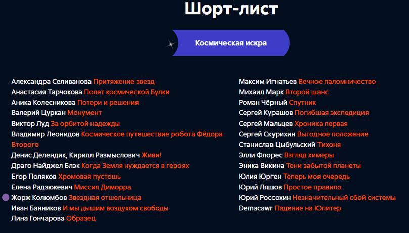 Мы вышли в шорт-лист конкурса фантастики «К звездам» в номинации «Космическая искра»!