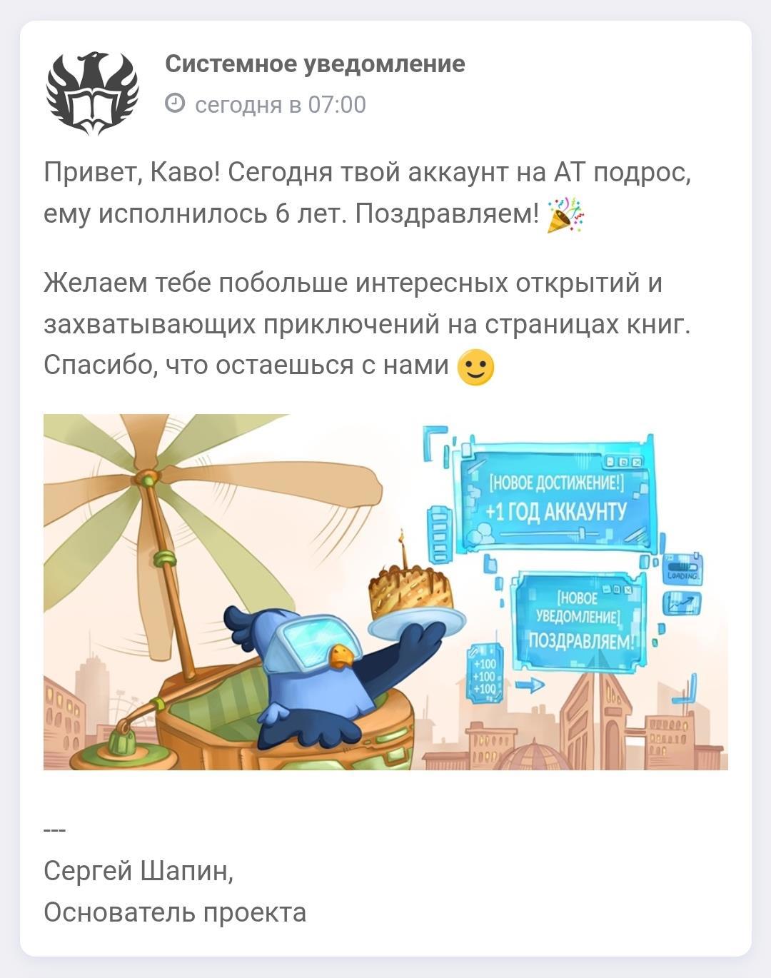 Даже и вообразить никогда не мог, что буду участвовать в проекте столь долгое время. Год за годом, так и набралось 6 лет непрерывного чтения книг и фанфиков на этом сайте.