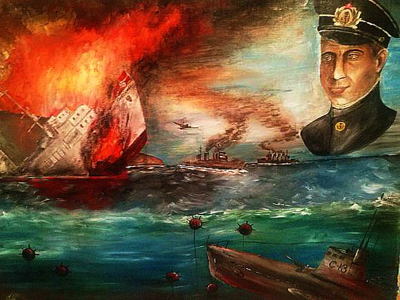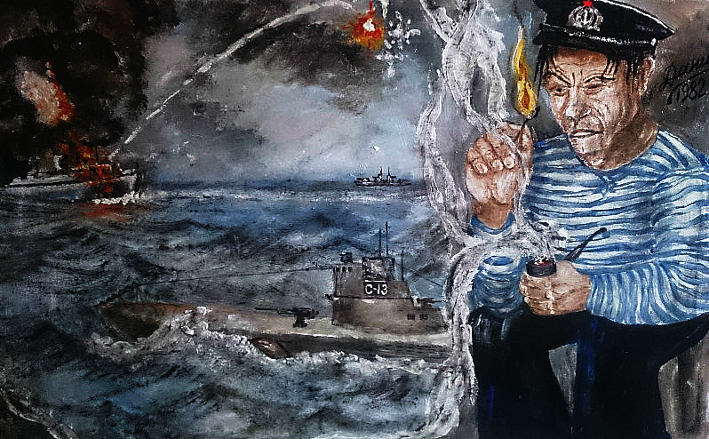 Одна из таких картин хранится в Национальном музее истории Великой Отечественной войны в Киеве, называется она "Подвиг подводника". На картине изображен советский офицер подводник, торпедировавший вражеский фашистский корабль. Прообразом для написания этой картины послужил командир подводной лодки Маринеско. Картина была подарена Киевскому музею на столетний юбилейный день рождения легендарного подводника коллективом Запорожского культурного центра "Парнас" в 2013 году.