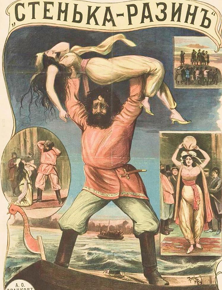 На ней тов.Разин С.Т., поддавшись на провокации своих подельников скинул княжну в экологически чистые воды реки Волги.