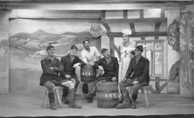 Британские военнопленные на сцене театра концентрационного лагеря "Шталаг XVIIIA". Незабвенное "Бьют часы, едрена мать, надо с бала убегать!" Да пиво входило в рацион.