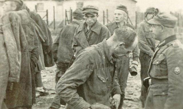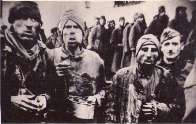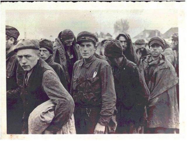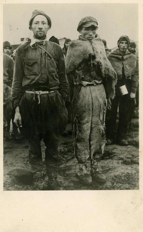 А это наши. В летней форме одежды. Октябрь месяц. Минимум двое - гражданских. И уже видны признаки дистрофии.