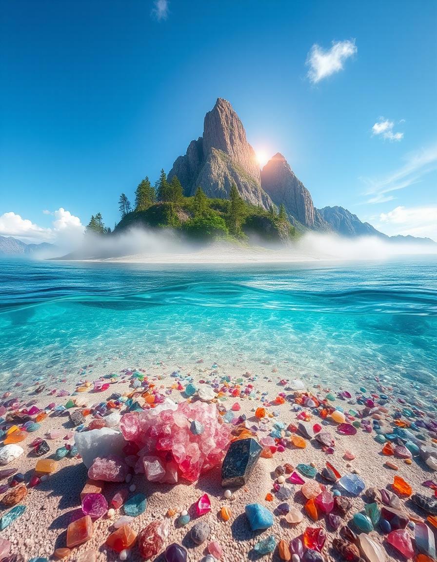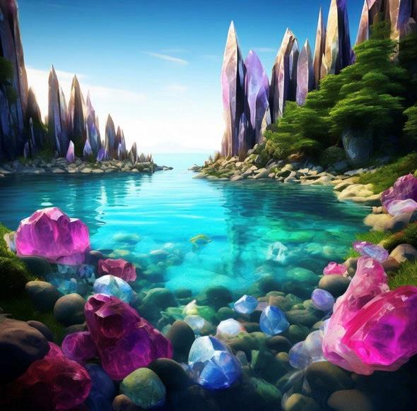 Вскоре, уже был виден остров, а через десять минут лодка ткнулась носом в каменистый берег. Оглядывая побережье, Каиса застыла, а ее рот открылся буквой «О». И правда, здесь было чему удивиться. Остров полностью состоял из разноцветных кристаллов. Большие и маленькие, они лежали на песке, торчали из скал, а некоторые скалы и сами были кристаллами. Переливаясь в последних лучах уходящего солнца мириадами бликов, они создавали невероятной красоты мерцающее сияние.