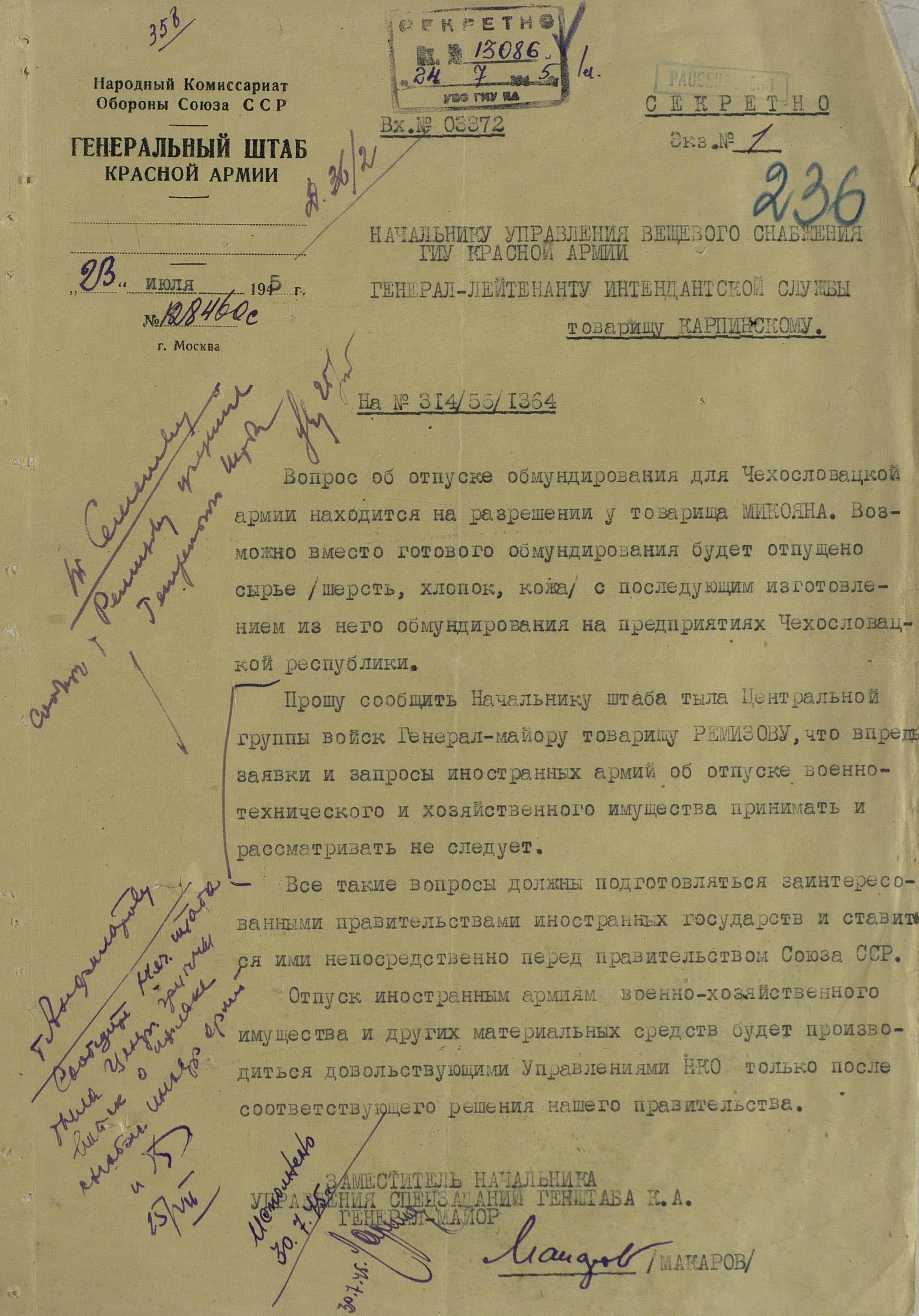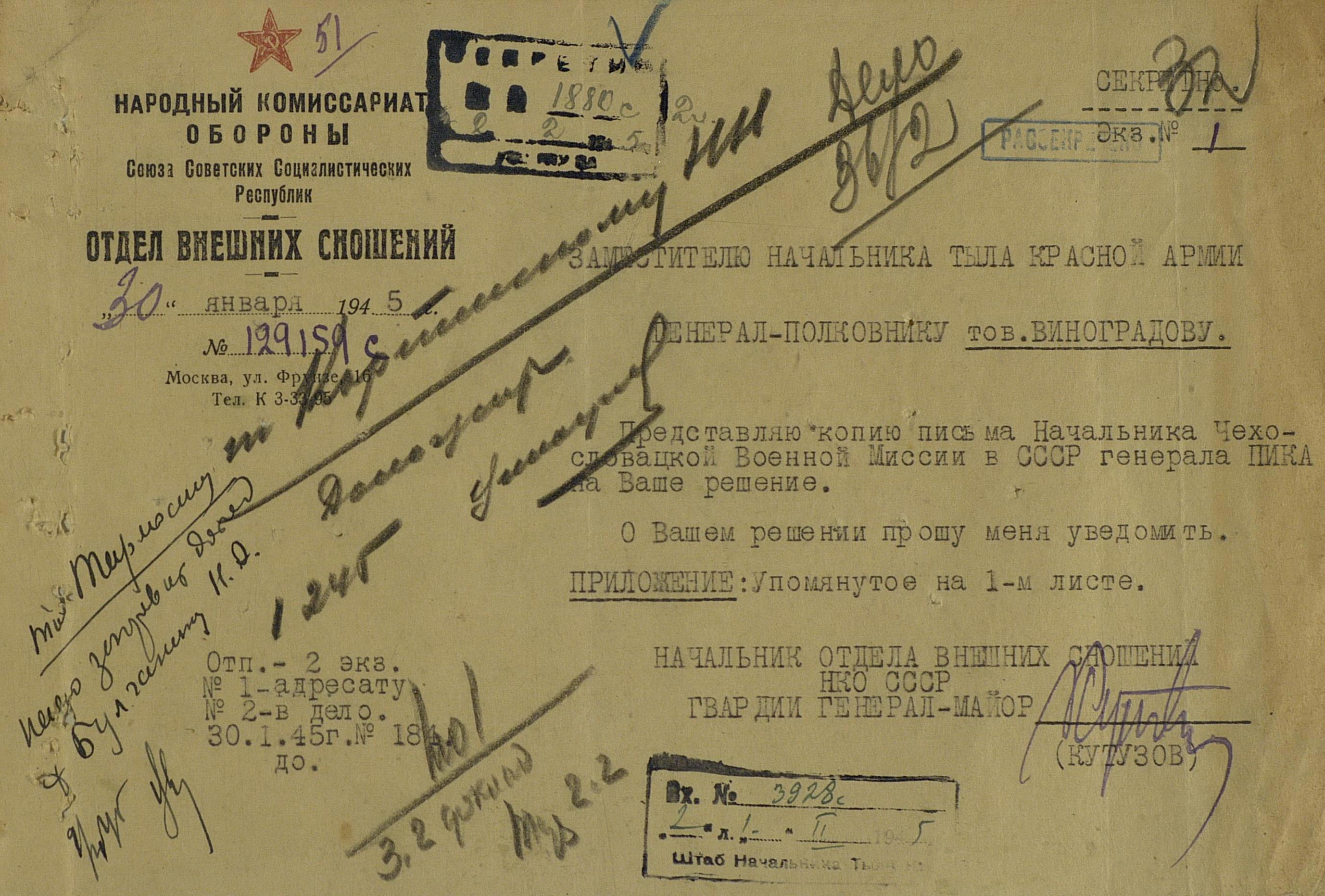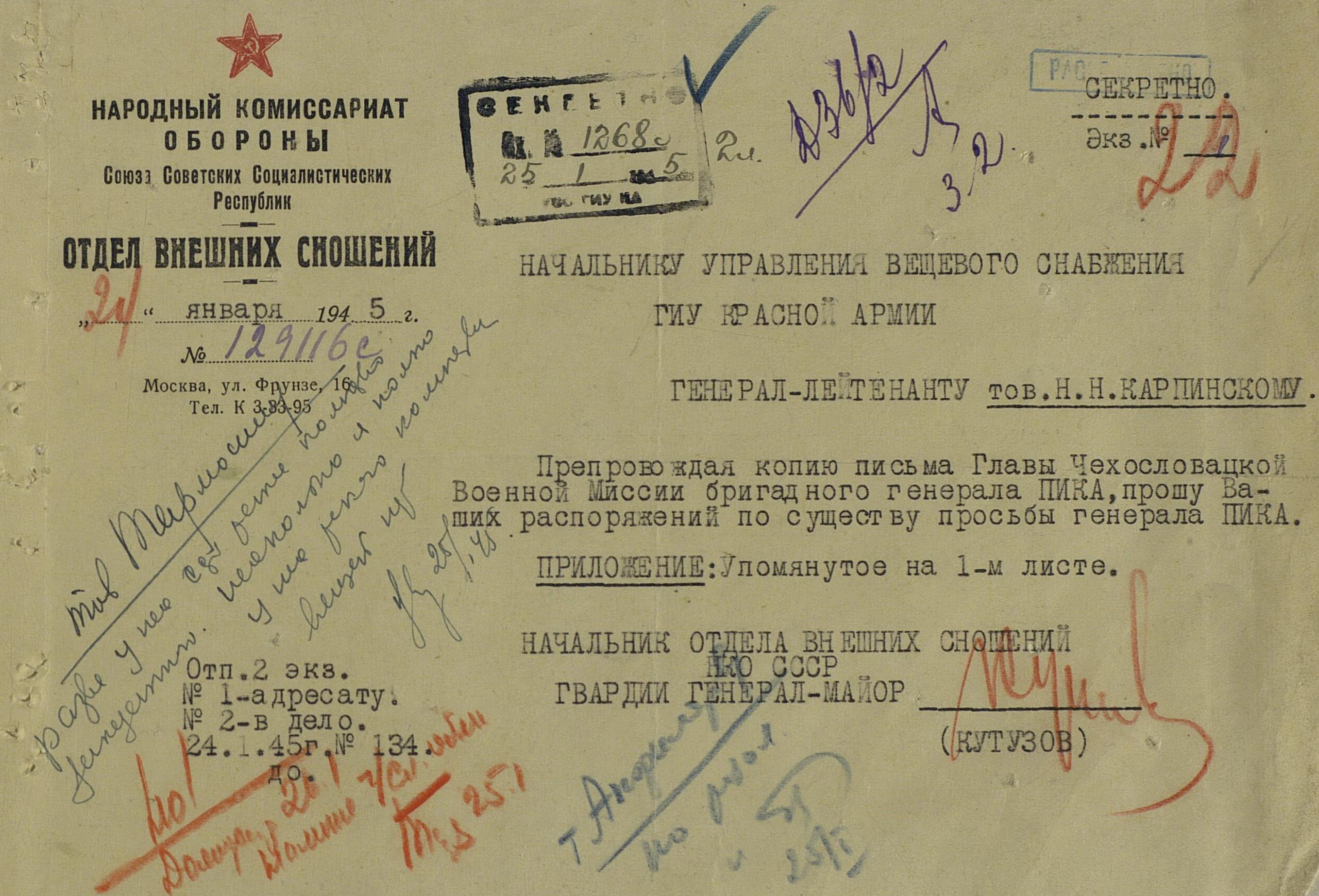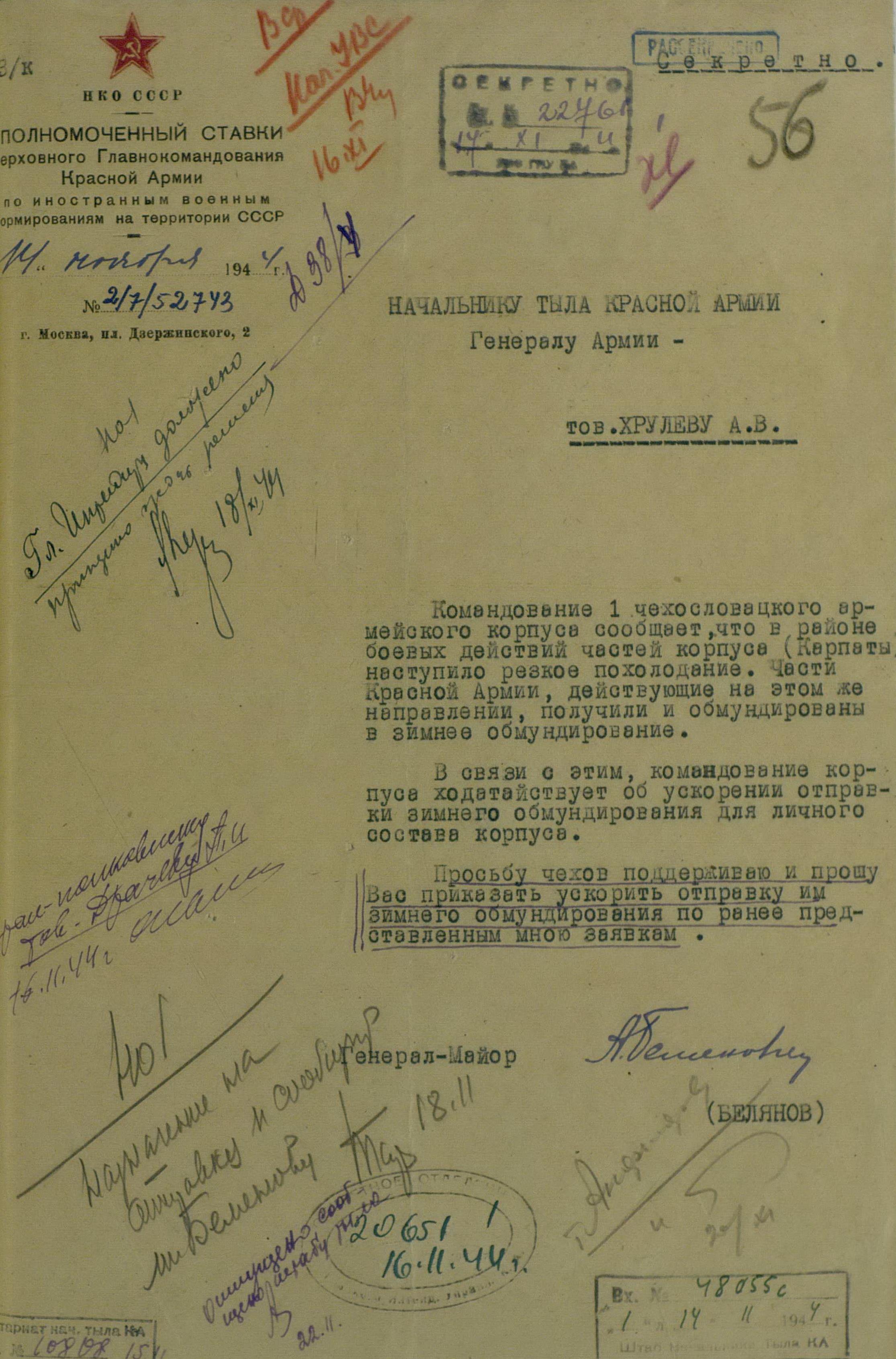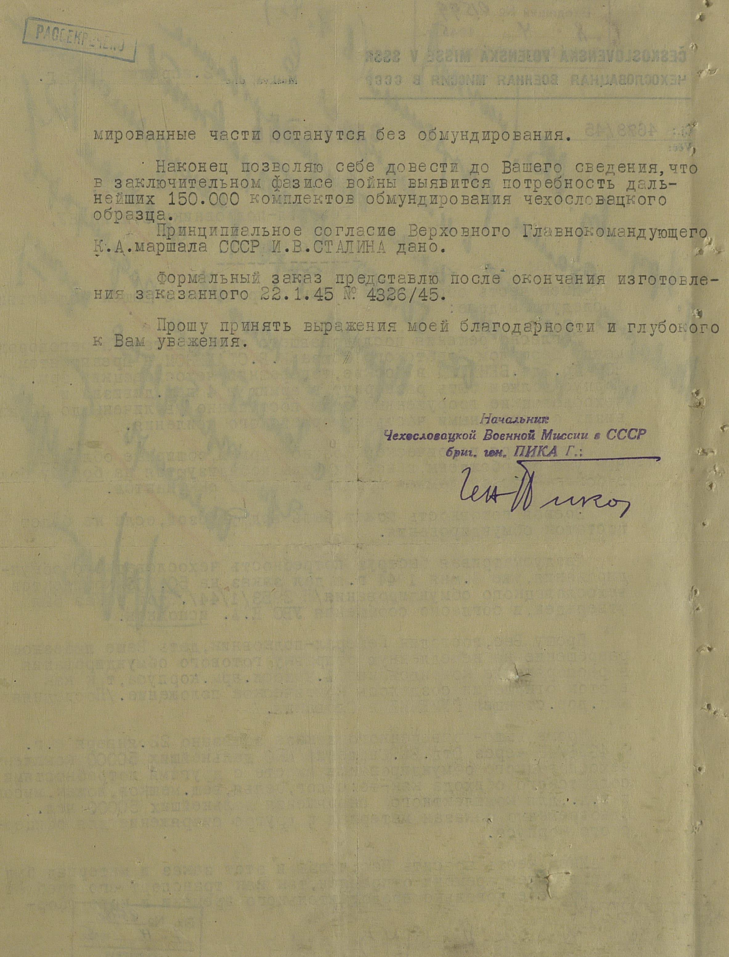Но, в декабре 1944 года и этот канал было решено перекрыть. На очередной запрос, Николай Александрович наложил следующую резолюцию: «просьба может быть принята к рассмотрению в том случае, когда чехи обратятся в Правительство сами».