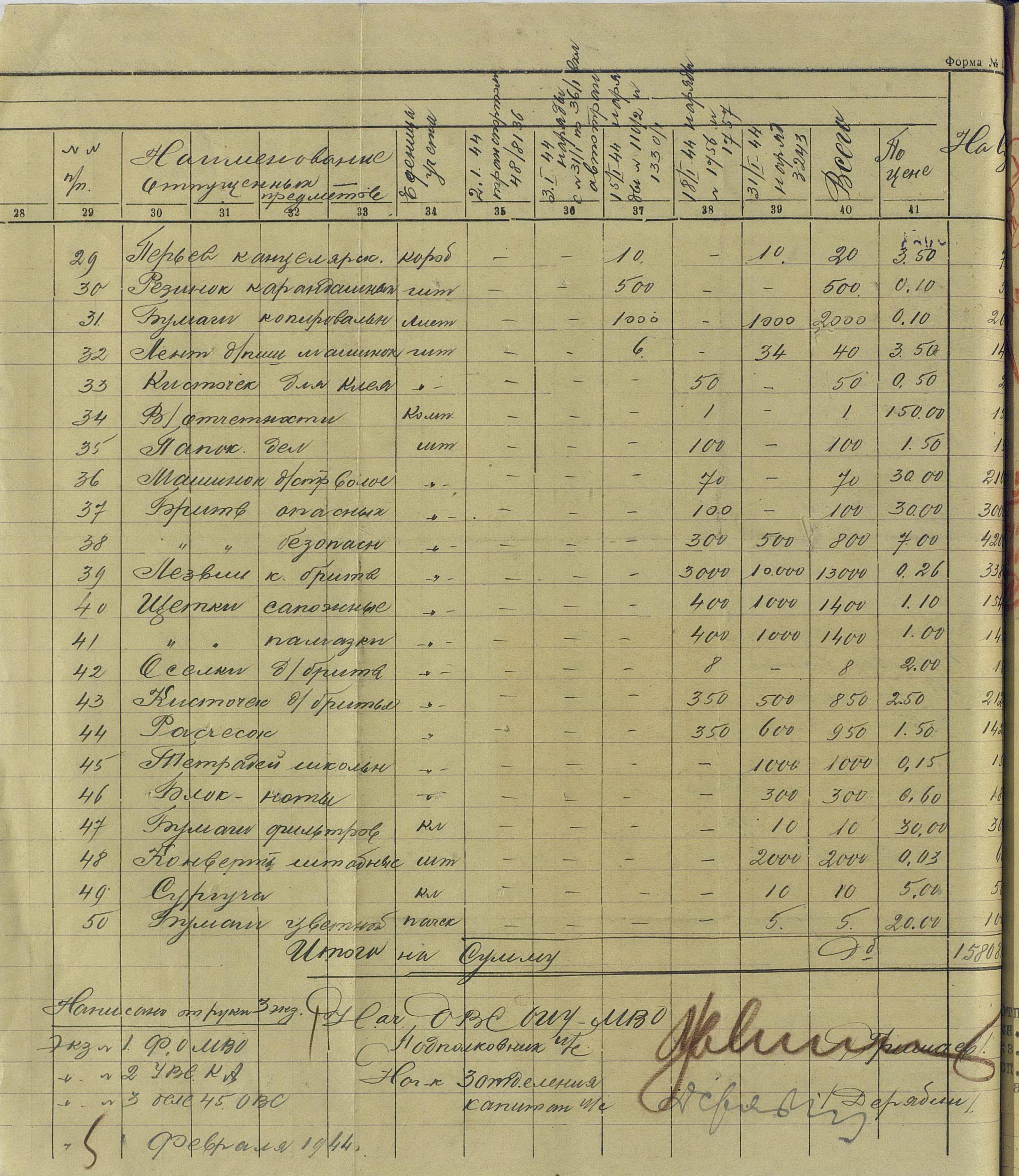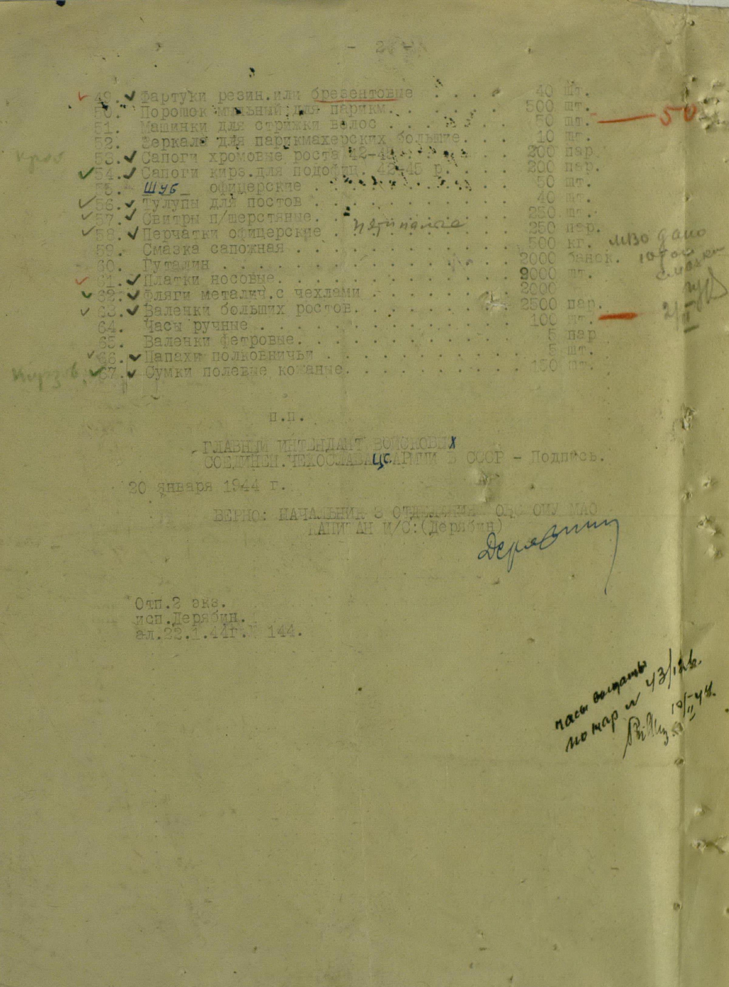 Как и в любой армии, особой заботой чехословацких интендантов было обеспечение высших офицеров, генералов, а также военнослужащих Военной миссии. Заявки на их снабжение встречаются регулярно. Например – для военнослужащих военной миссии. Там и про рядовых солдат не забыли, не говоря уж о более старших начальниках.