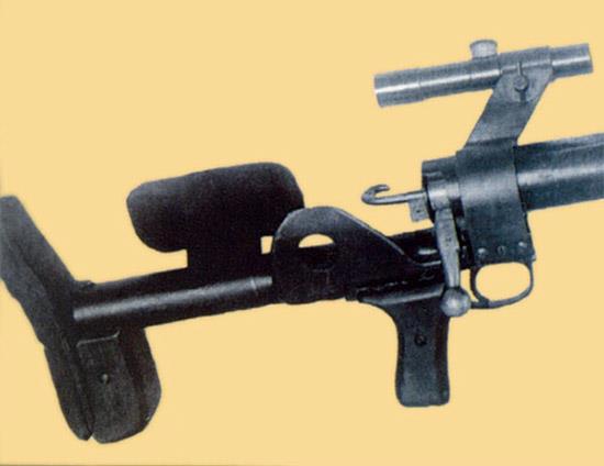 Рис. 20. Противотанковое ружье ПТРД с оптическим прицелом ПУ на опытном кронштейне,1943 г.