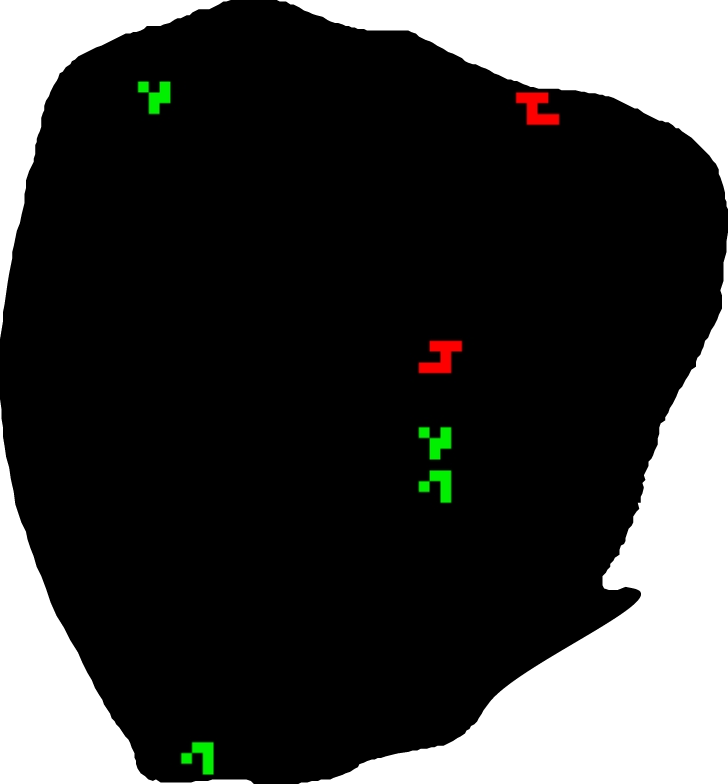 В общем... Вообще... Я нашёл базовую, нулевую, стартовую компазицию. Стартовый патерн в 316 итерации завершающийся столкновений яблок падающих с двух сторон земли друг в дружку... Он выглядит элементарно. Циферка габорита 3х5 одна из 10 известных в окружении 3 плюсиков.