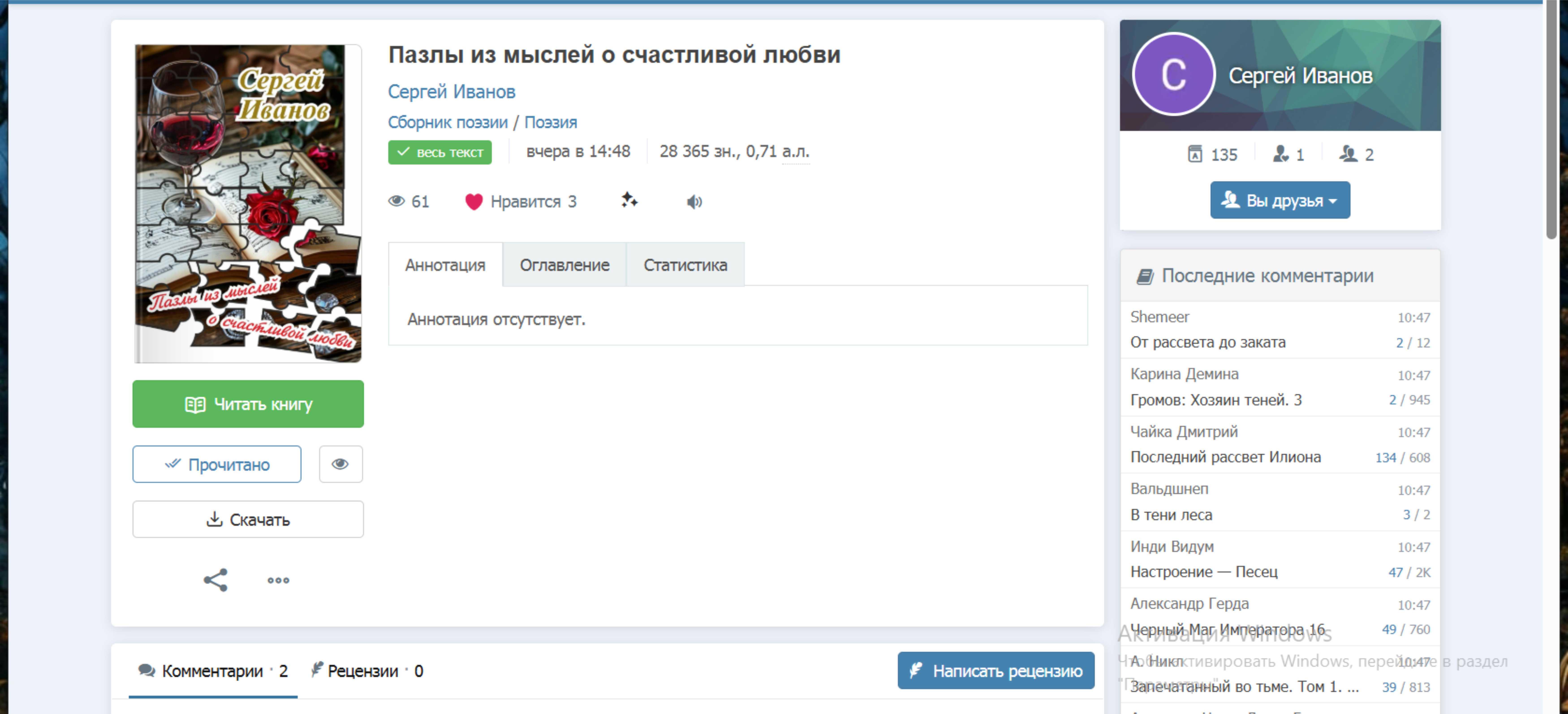 Автор: Альберт ВерховенДрузья! Хочу вам представить творчество моего друга детства, с которым мы недавно встретились, после многолетней разлуки. И неожиданно выяснилось, что я, за это время, начал писать романы, а он - стихи. И стихи у него прекрасные. Прошу Вас поддержать новичка на нашем ресурсе лайком и библом.