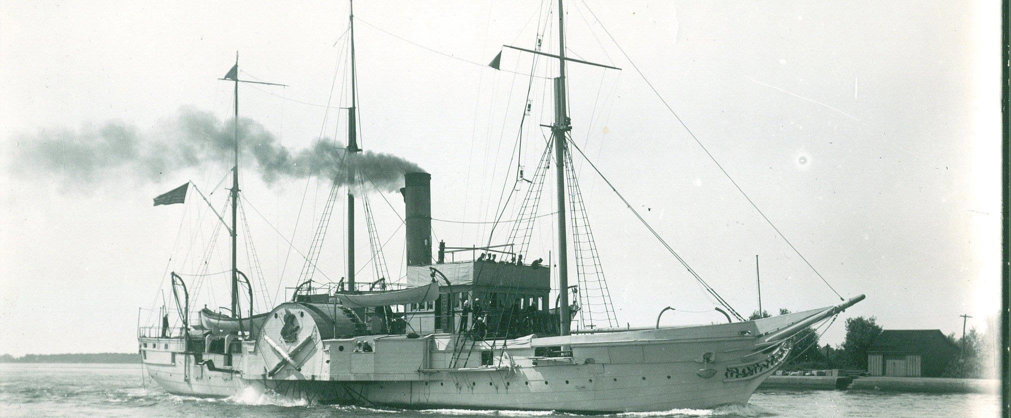 Первый военный корабль флота США с железным корпусом. Построен американцами «на всякий случай» в виде войны с англичанами на Великих Озерах – в тот момент пепел сожжённого Белого Дома стучал в сердца янки особенно сильно. Хотя на самом деле англичане в тот момент про США не сильно думали – у них Канада полыхала, всерьез, с партизанской войной, сожжением мятежных деревень и прочими прелестями народного негодования.
