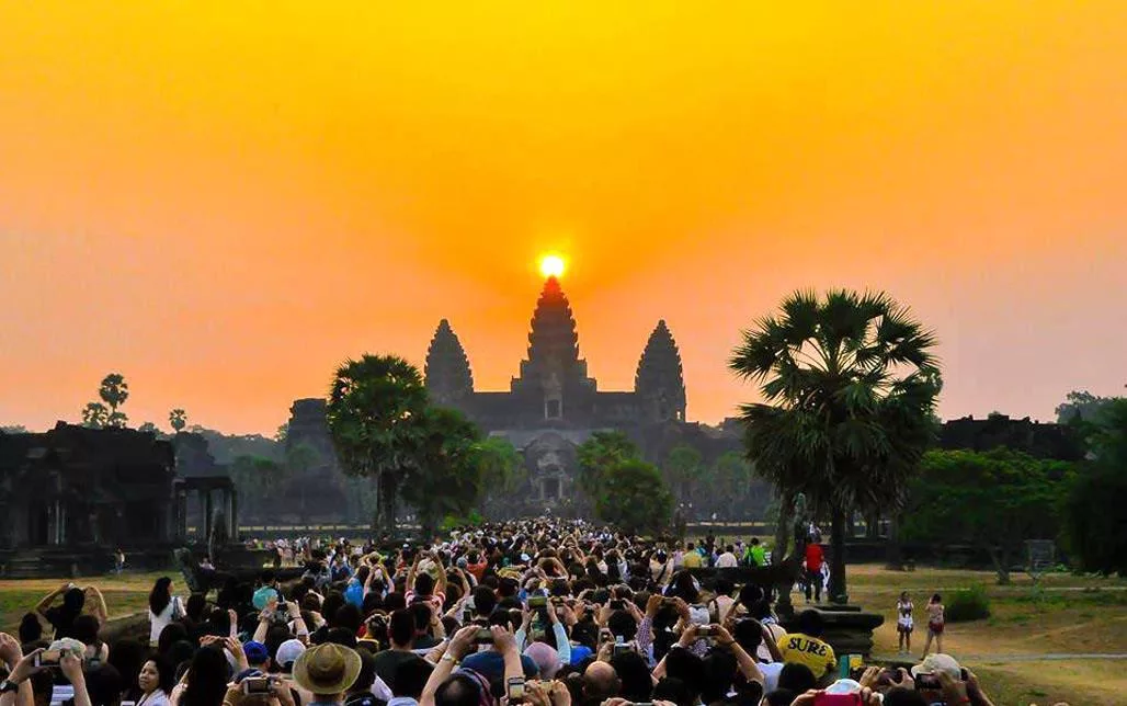 При рассвете в дни равноденствий Солнце поднимается прямо над макушкой центральной башни величайшего храмового комплекса, построенного во времена расцвета империи кхмеров.