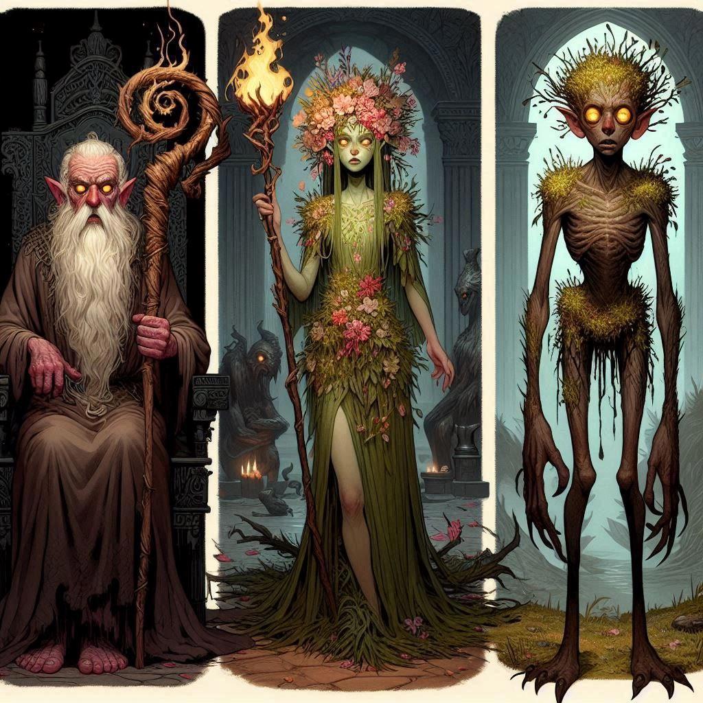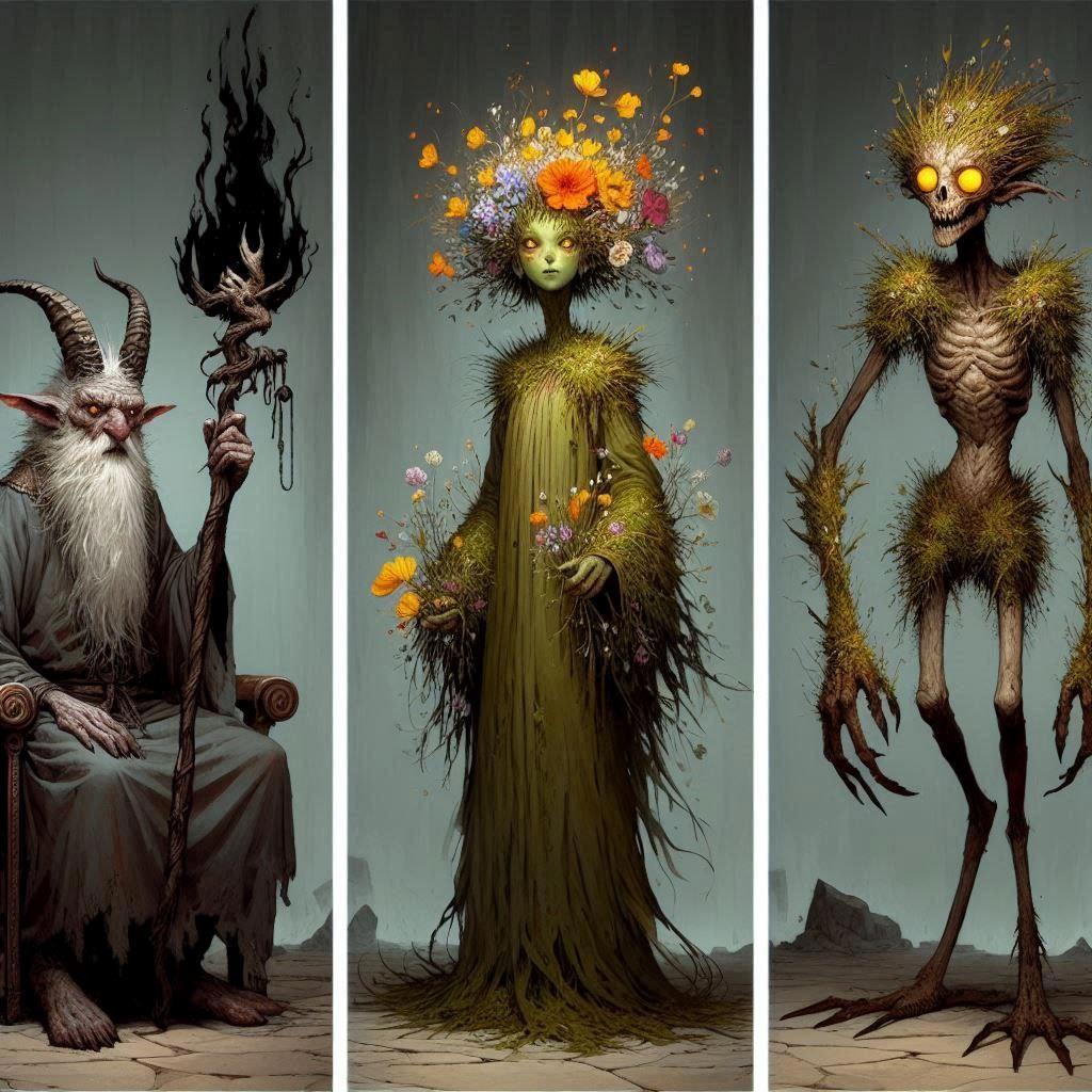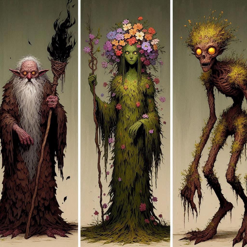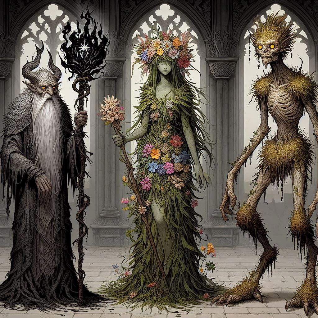 Первый набор это вариации Фарро, безымянной дриады и Хтони из последней главы.