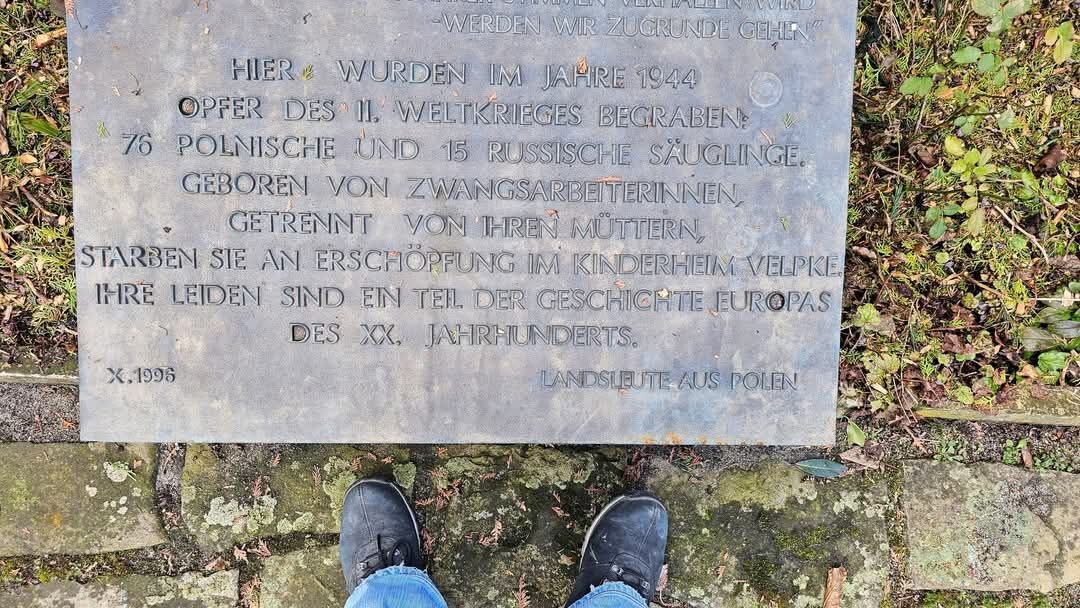 Ниже - мемориальная табличка на одном из кладбищ. Таких кладбищ в Германии около 400, общее число захороненных младенцев неизвестно.