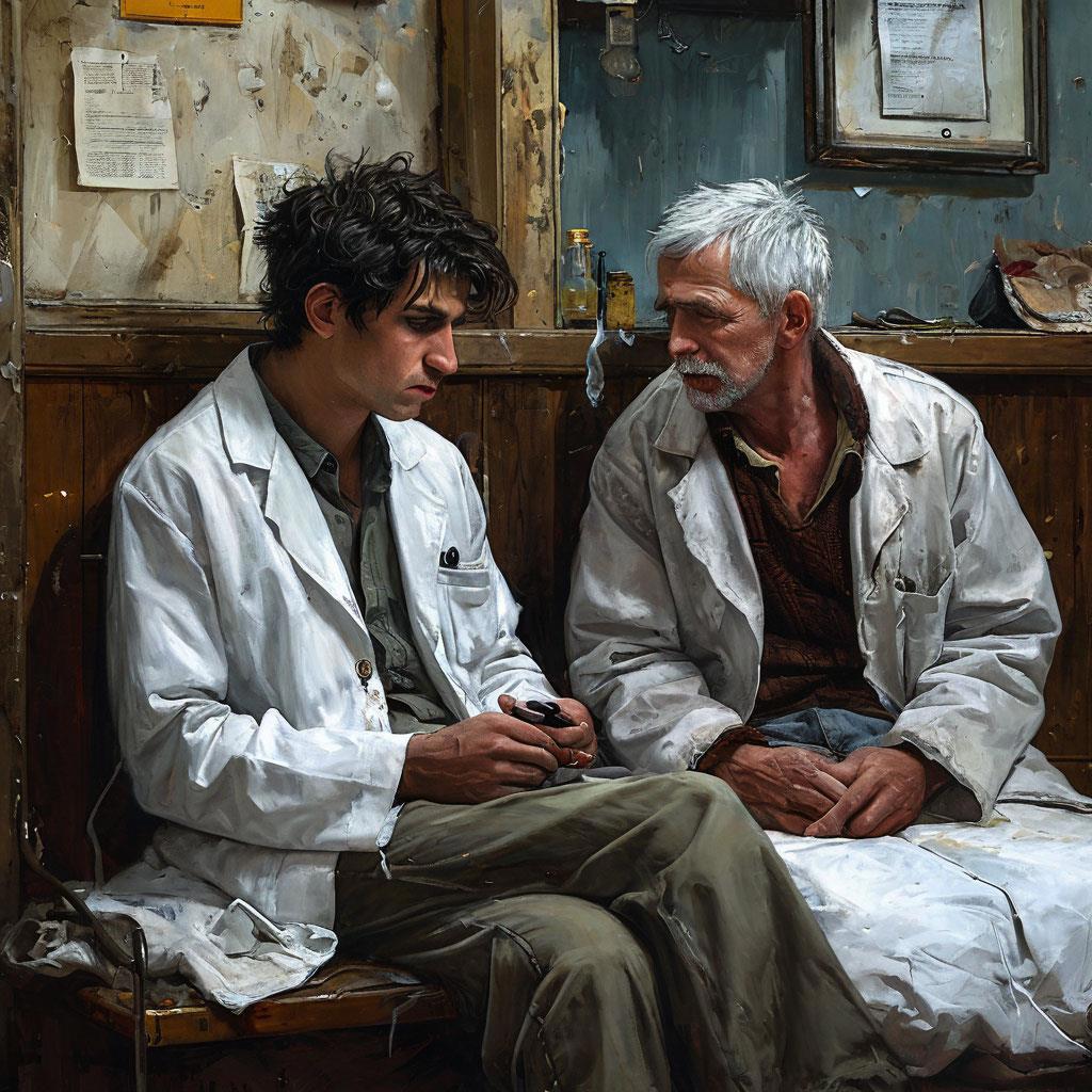 Двое мужчин сидели в маленькой душной сторожке на территории больницы, половина корпусов которой сейчас была заброшена, окна заколочены, а в бывших палатах гулял ветер и текла крыша. Аркадий Иванович, молодой акушер-гинеколог, сидел на продавленной кровати старика, местного сторожа Ивана Петровича, которого все просто и по-отечески звали дядей Ваней. Он докуривал уже не первую сигарету, покрасневшие от дыма глаза начинали слезиться, но за ней всё равно последовала новая. Чиркнув спичкой, врач тяжело вдохнул едкий дым. Дядя Ваня, недовольно пробурчав что-то, только молча налил горячий чай в щербатую кружку и сел рядом.