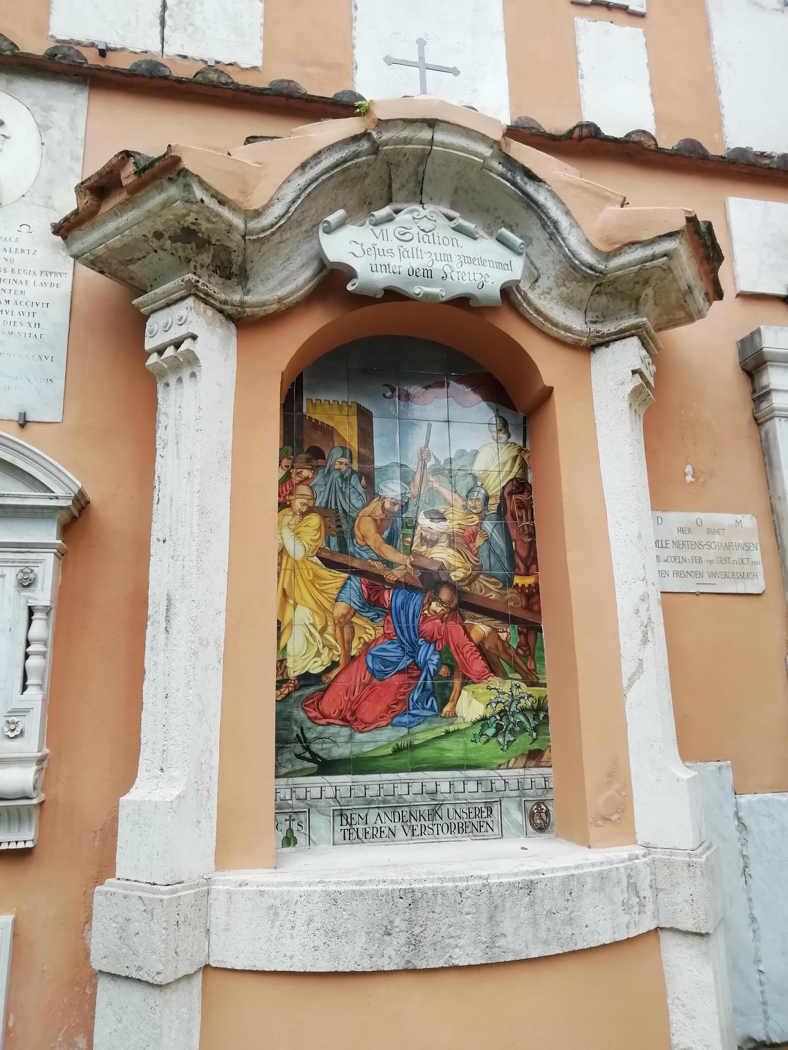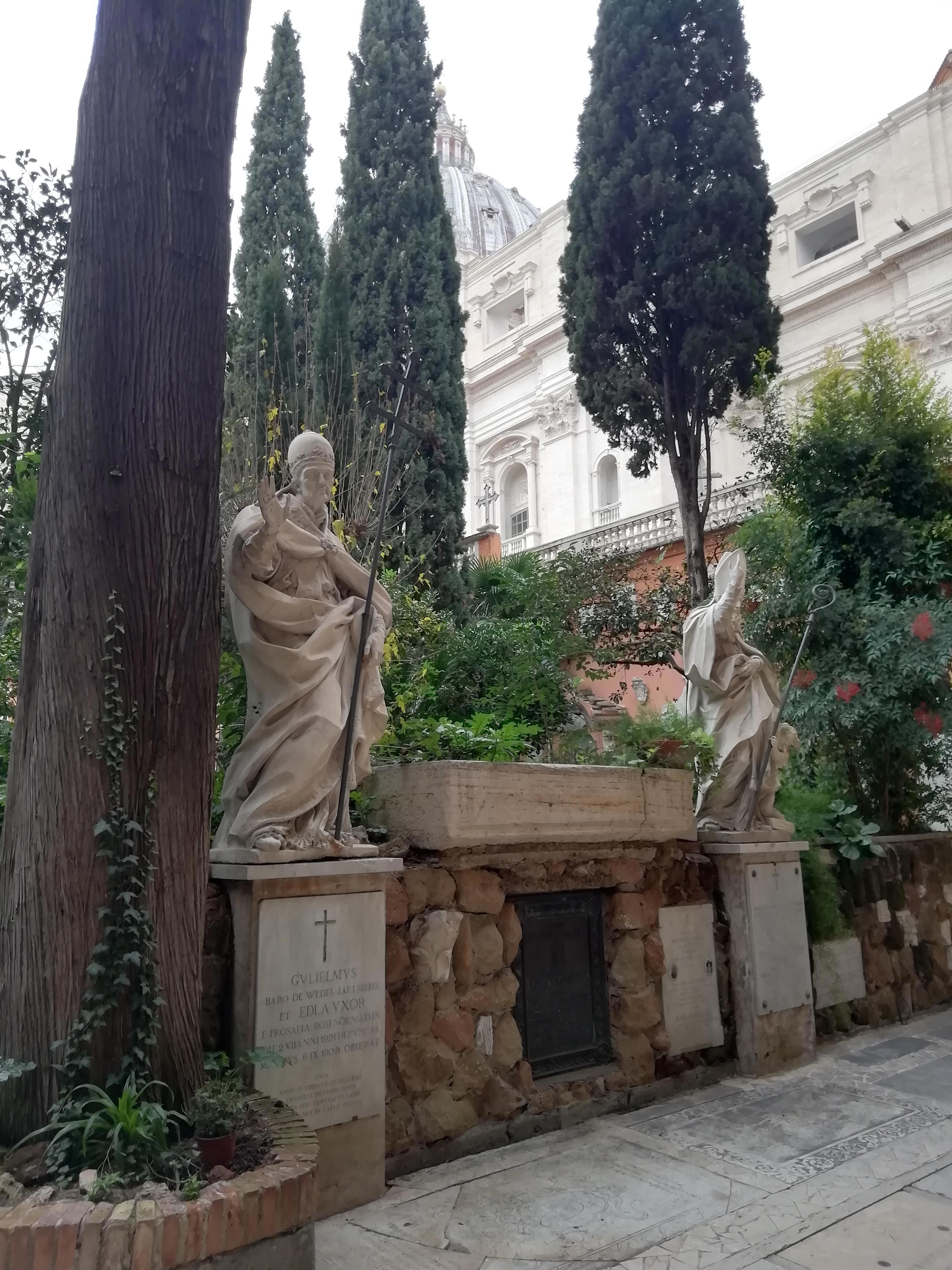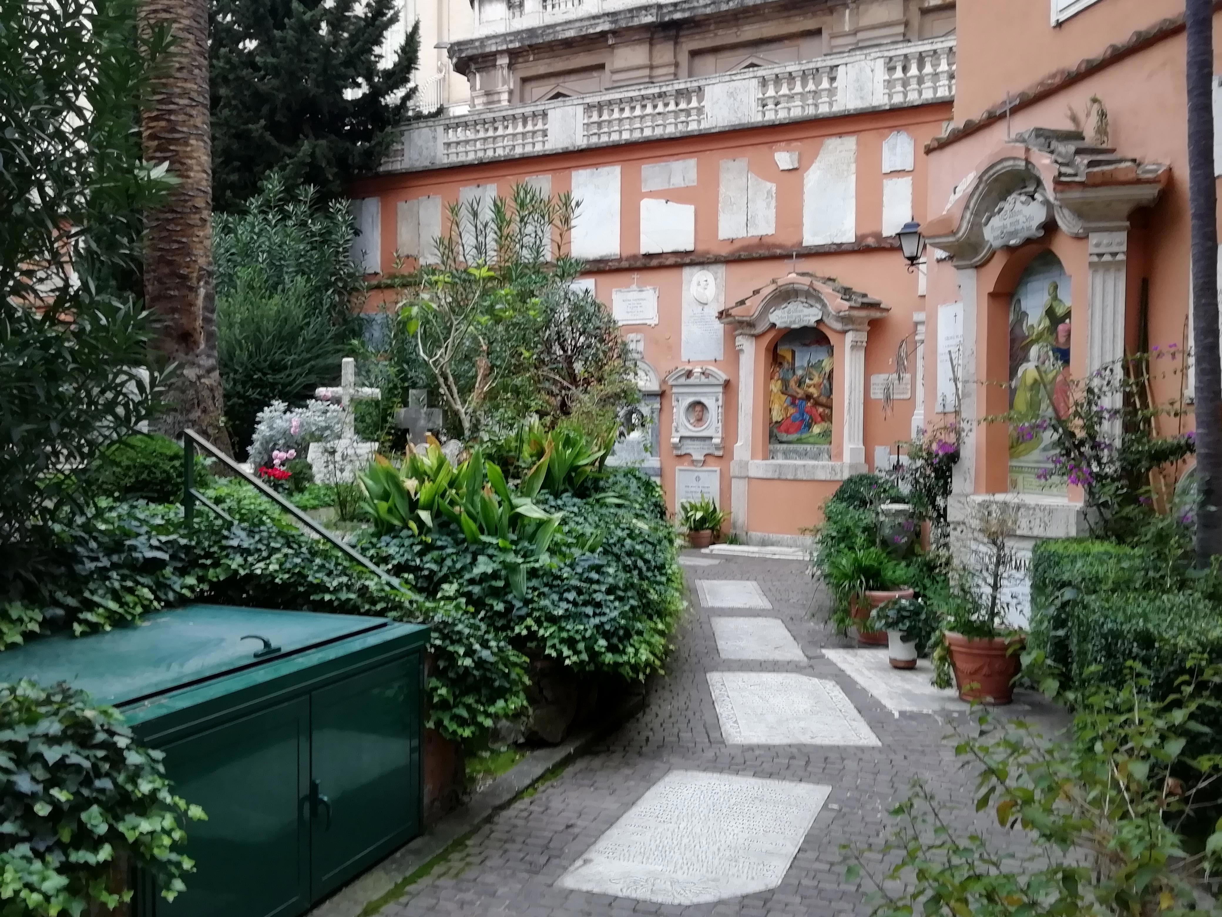 Это Campo Santo Teutonico - немецкое кладбище в Ватикане. Тут хоронят немцев, умерших в Риме, откуда бы они ни были - если, конечно, в этом есть необходимость.
