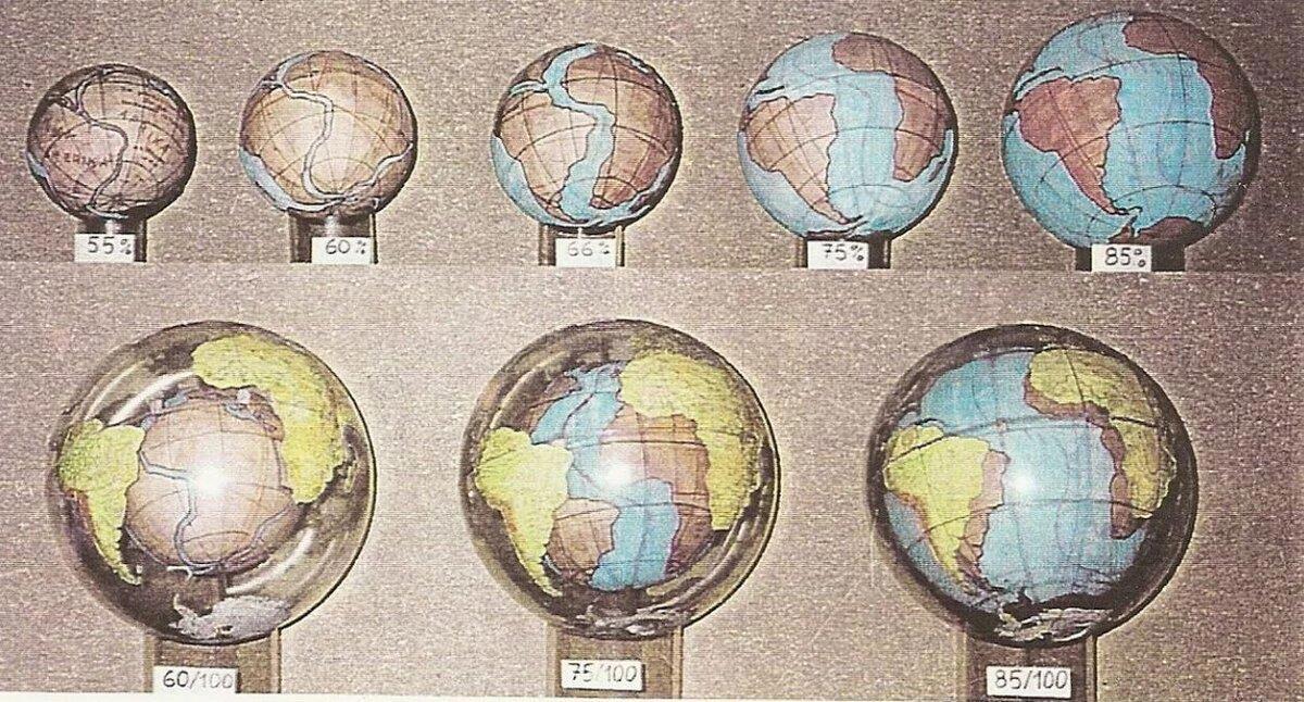 Забавный эффект, - если мы сжимаем Землю, континенты сходятся в одно целое.