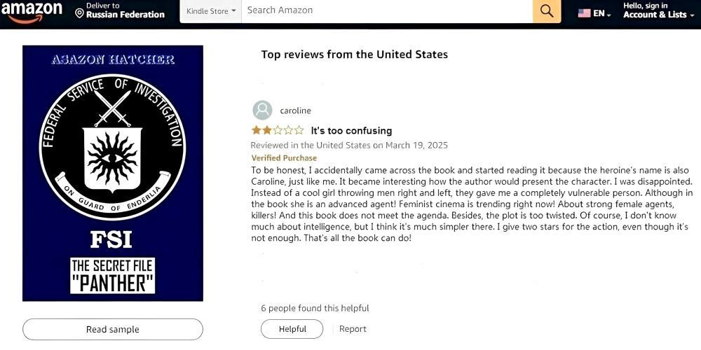 Автор: Игорь ХэтчерПривет, друзья! Не так давно я выкладывал хвалебный отзыв к своей книге "Секретный файл "Пантера", которая продаётся на английском на Амазон. И вот на днях опубликовали ещё одну рецензию, но на этот раз критическую. Ну поскольку мы люди честные, то я также выкладываю её здесь. Скрин прилагается.