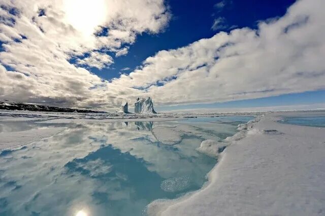 В районе океана часто возникает эффект так называемого «ледового неба», когда свет, отражаясь от поверхности льдов, словно рисует их зеркальную картинку на небесах. Бывалые моряки используют ее, чтобы избежать столкновений с айсбергами.