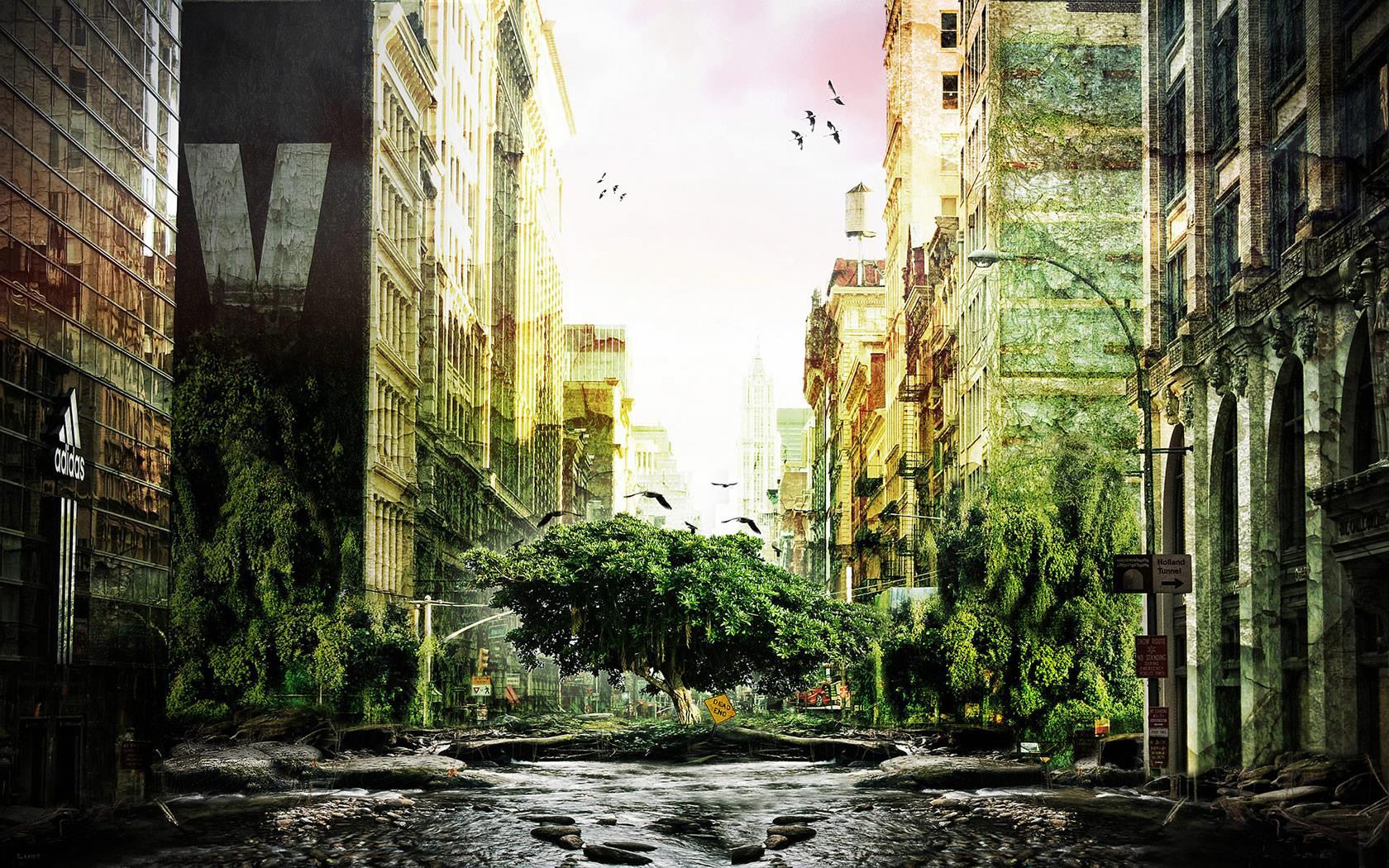 Кое-какие виды растений стали настоящими великанами. Прежде скромные вязы, клены и липы вымахивали выше бывших небоскрёбов. Стены пустых многоэтажных зданий почти сплошь увивали прочные шипастые лианы, с колючками длиной с мужскую руку. Растение, походившее на серо-зелёный «испанский мох», свешивалось неопрятными бородами со стен практически всех домов, закрывая окна и дверные проёмы.