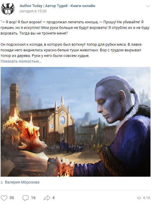 Автор: Морозова ВалерияСтараюсь не пренебрегать рекламой в группе АТ в контакте. Периодически кидаю туда посты с моим "Зло затаенное", приток читателей есть, но небольшой: темно-эпическое фэнтези менее ЦА-шный жанр, чем какое-нибудь литРПГ или академка. Понимаю.