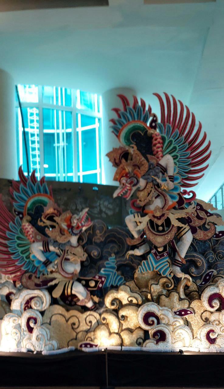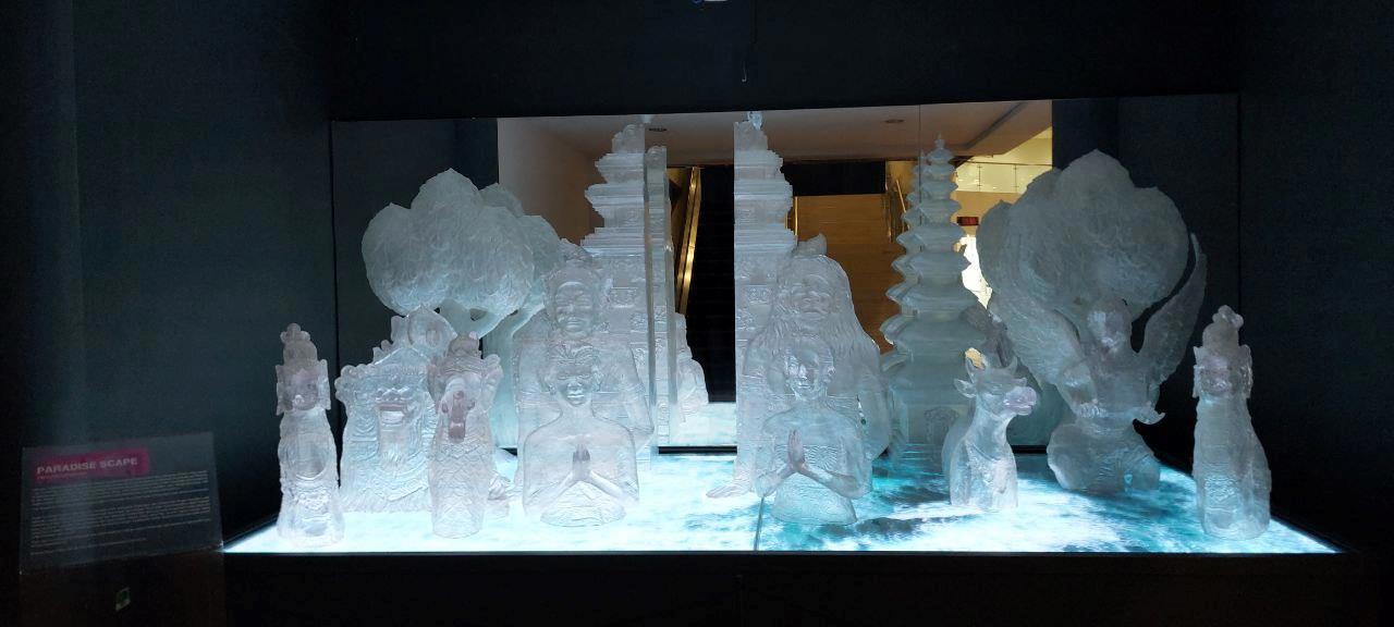 Самолёт замер, пассажиры повскакивали с места, стюардессы заполошно замахали руками усаживая всех обратно. И действительно постояв минут с пять мы поехали дальше. В результате мы добирались до здания в автобусе. Помещение встретило нас приятной прохладой. На входе установлена композиция, сделал фото,