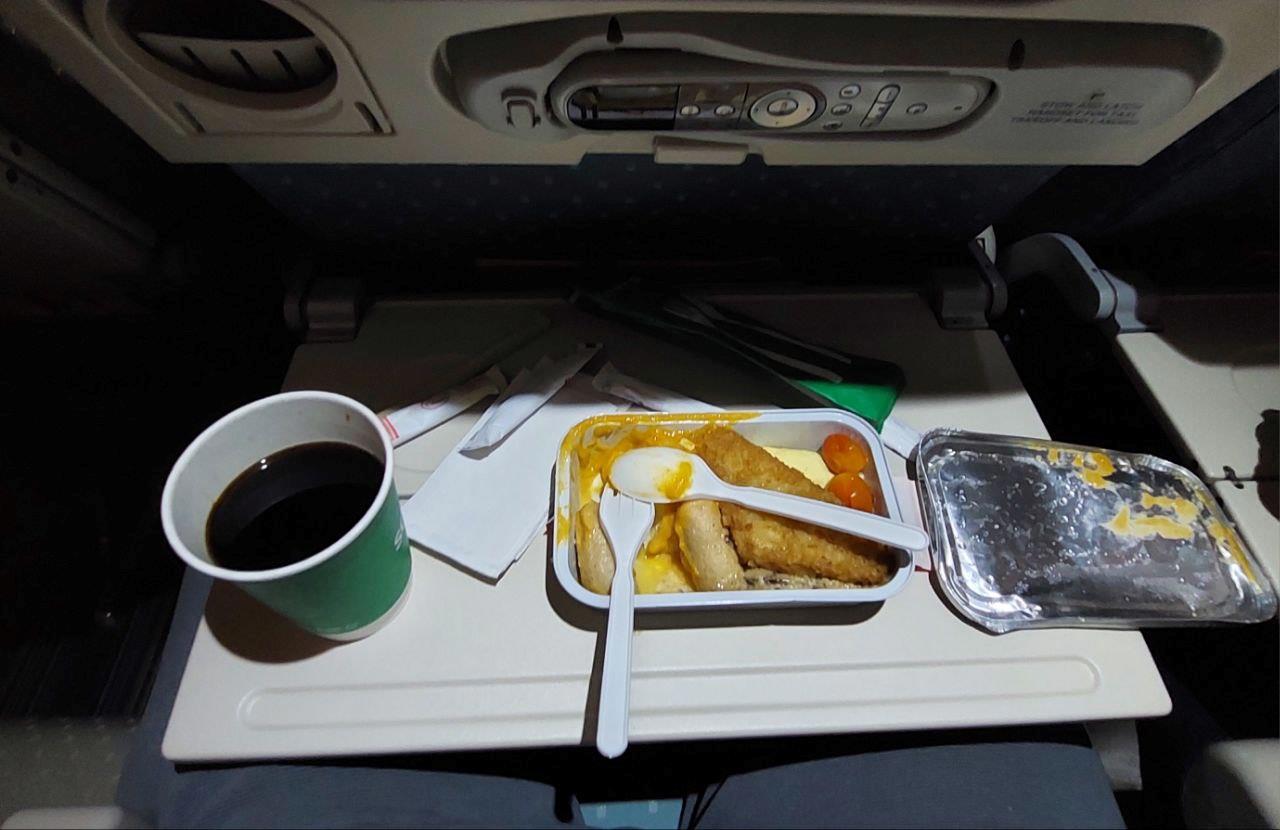 Салон погрузился в темноту, борт пошёл на взлёт. Где-то через час засуетились бортпроводники, время перекусить.