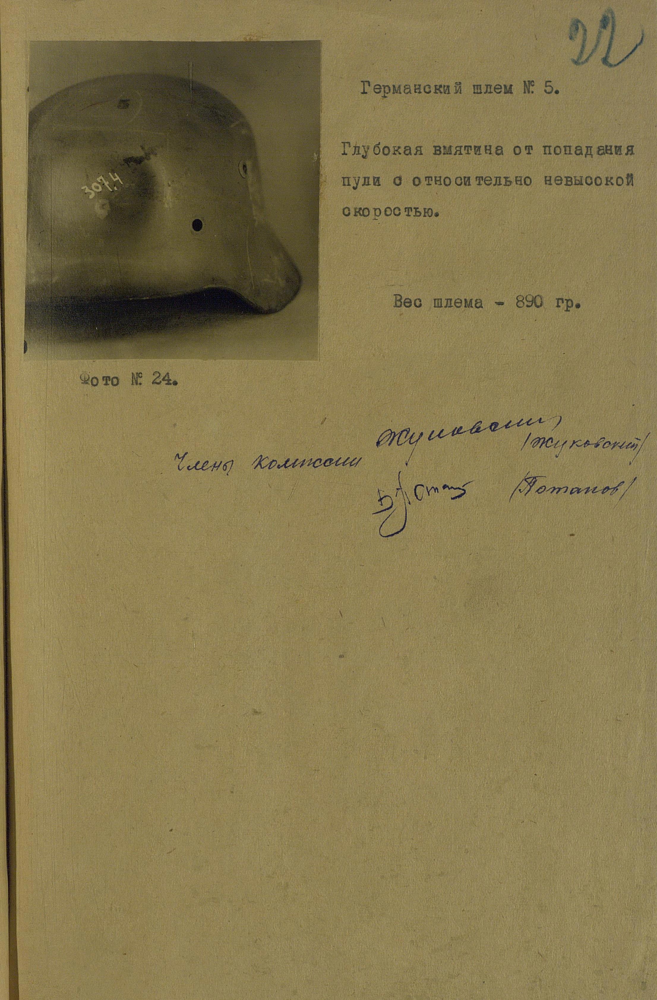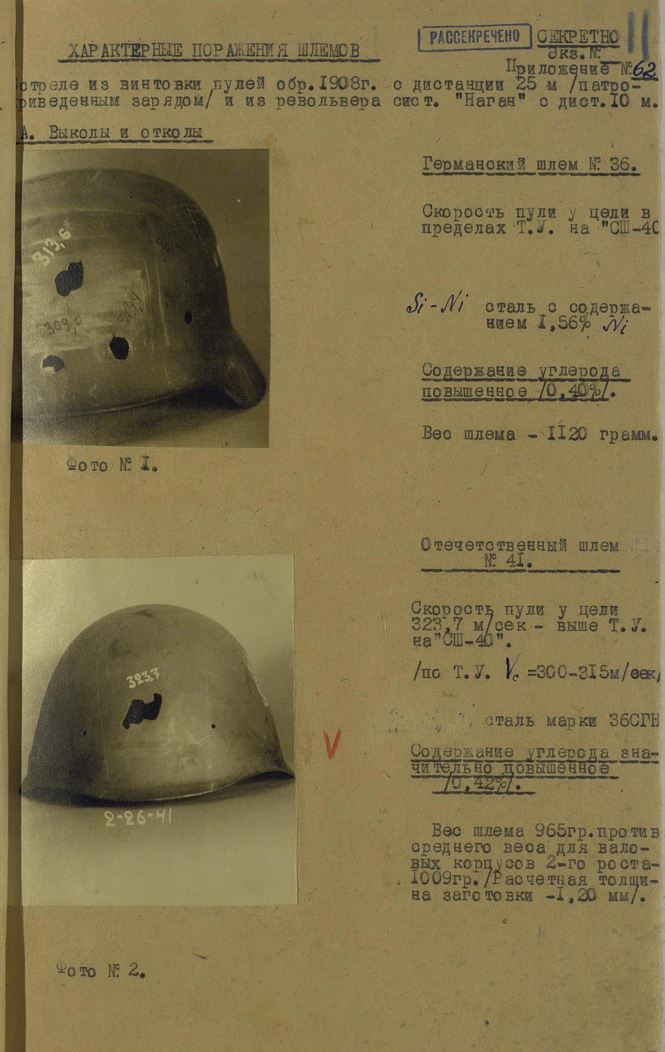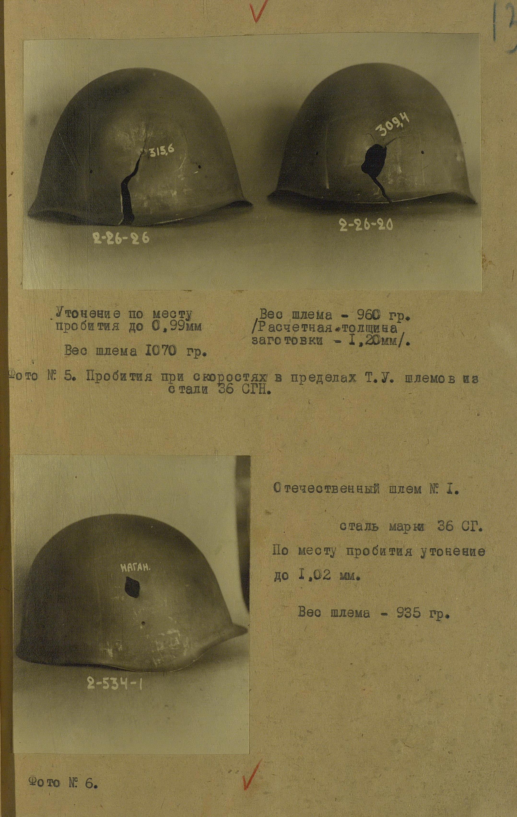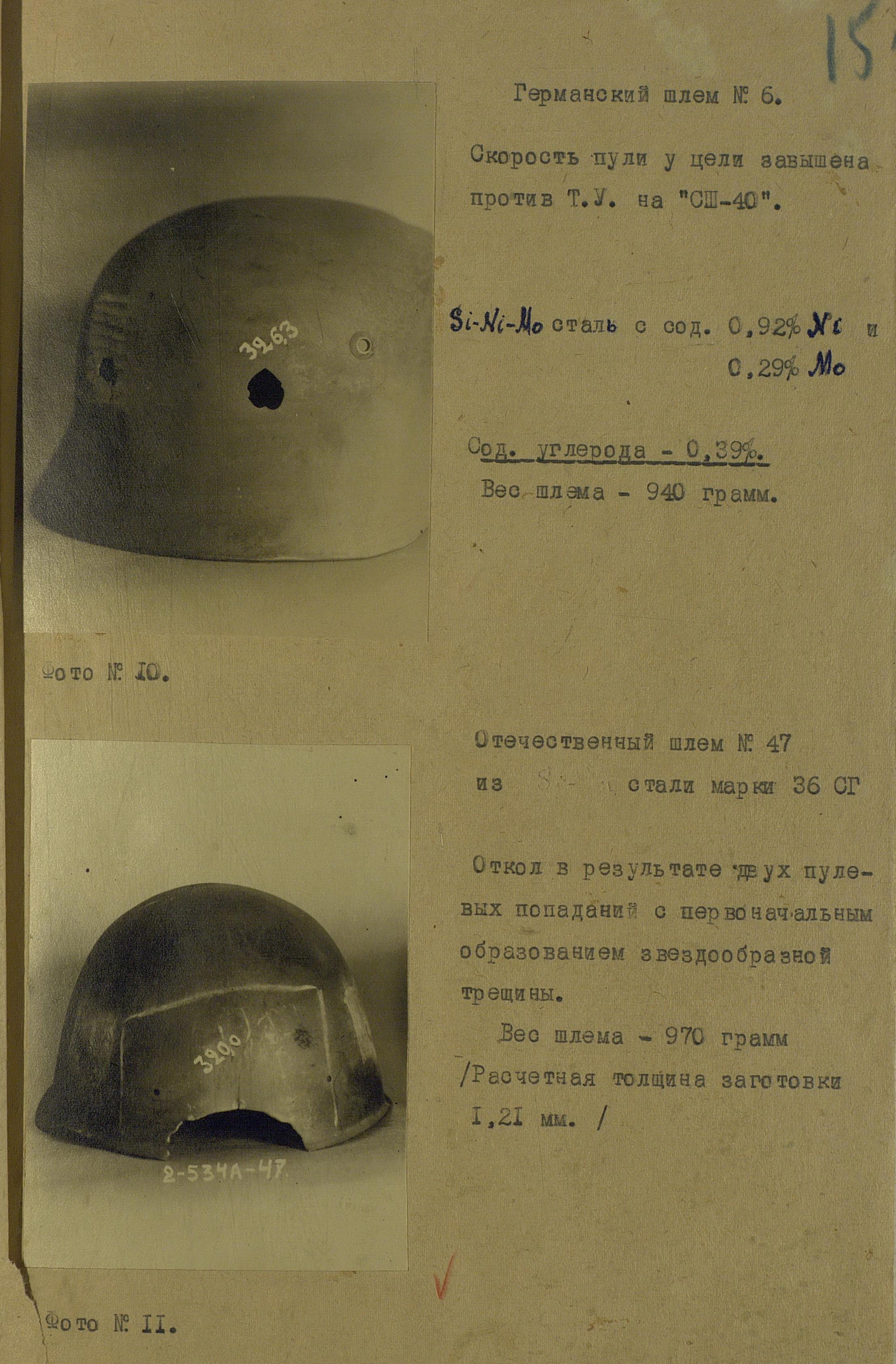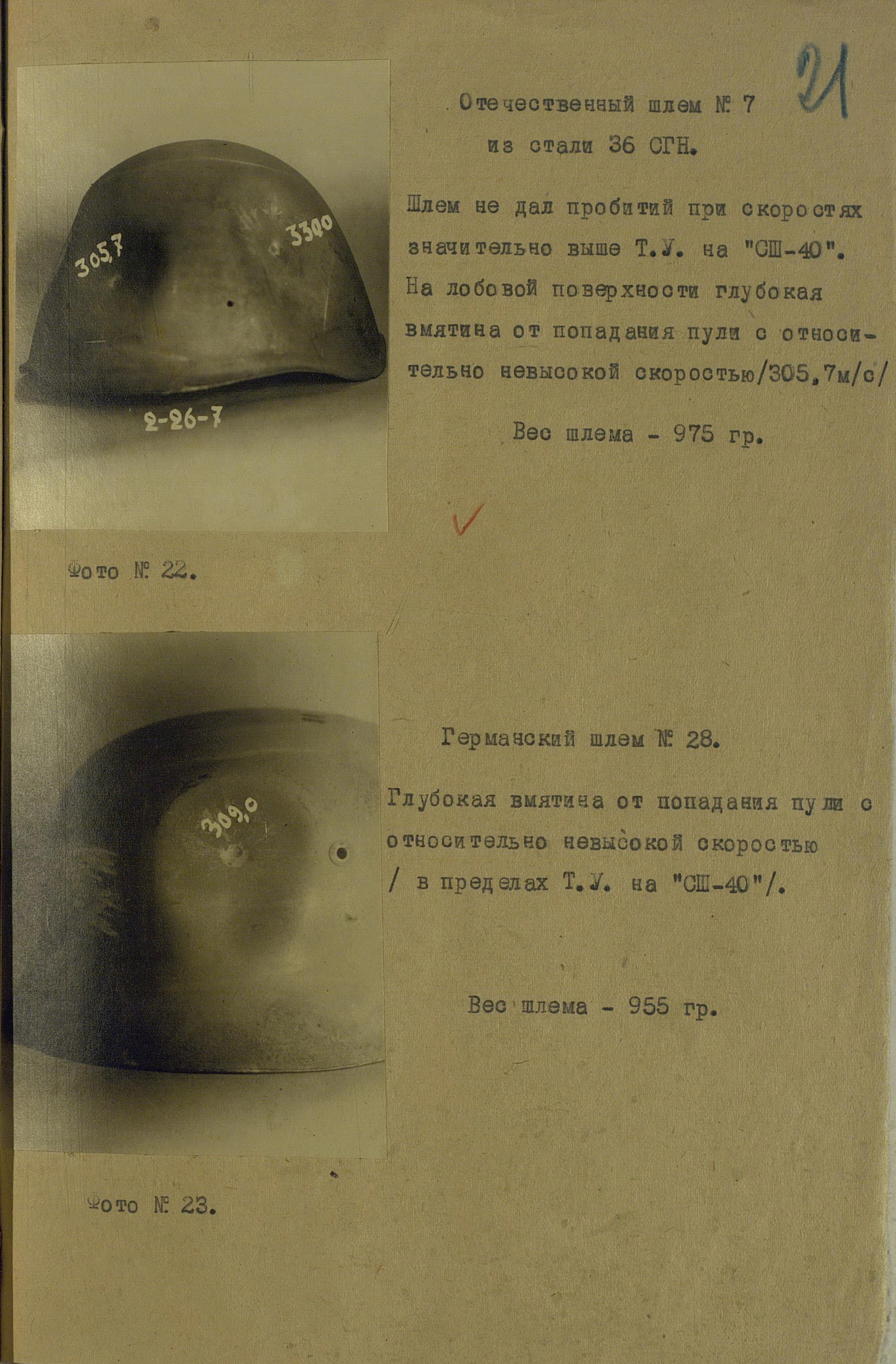 Не менее интересны и результаты обстрелов из разных видов стрелкового оружия, начиная с "Нагана" и заканчивая ППШ. Был уверен, что среди прочих есть данные и о том, как шлема держали осколки от отечественных и немецких гранат. Но, по всей видимости, эти сведения видел в делах, но копию, увы, так и не сделал.