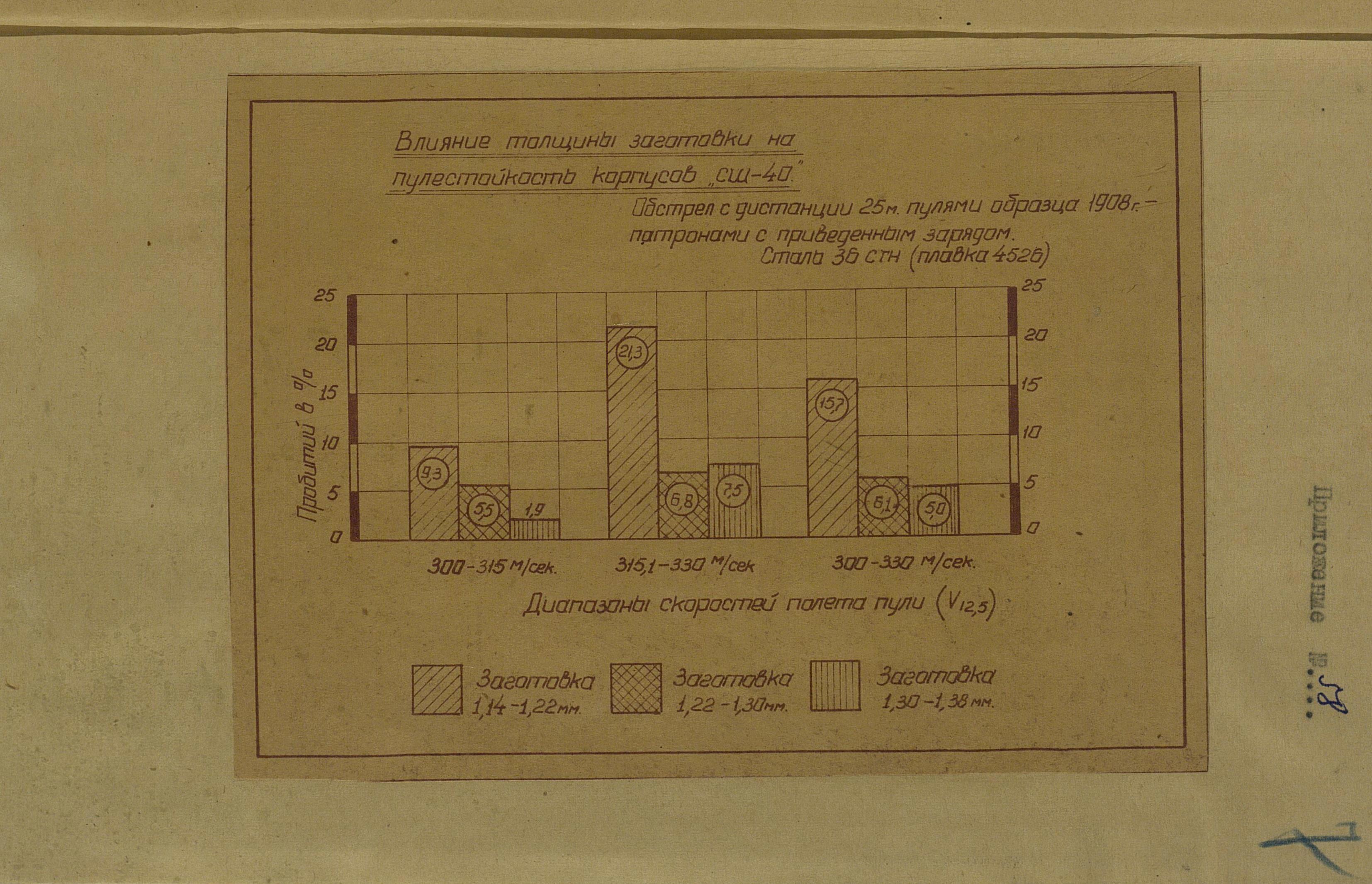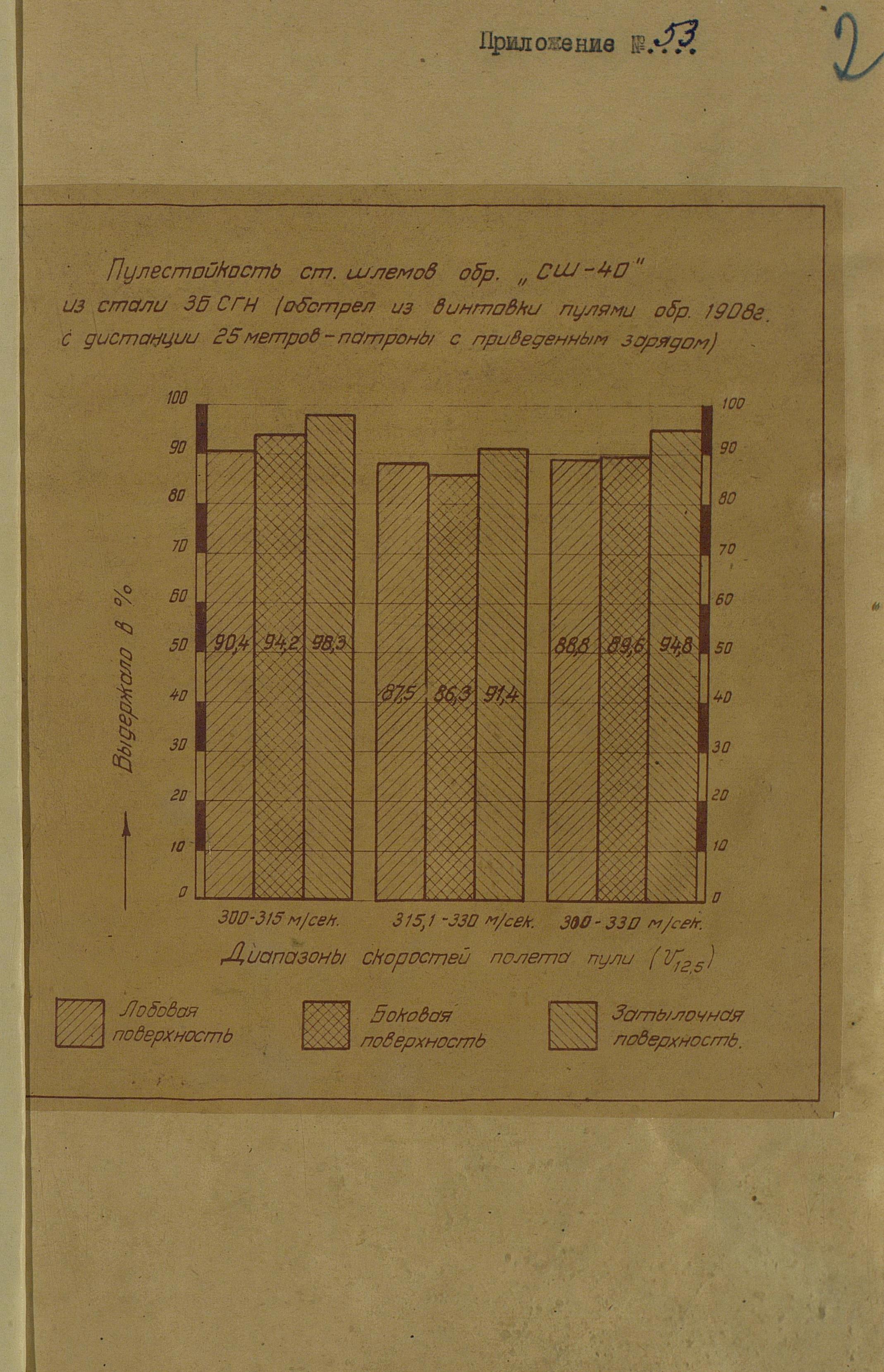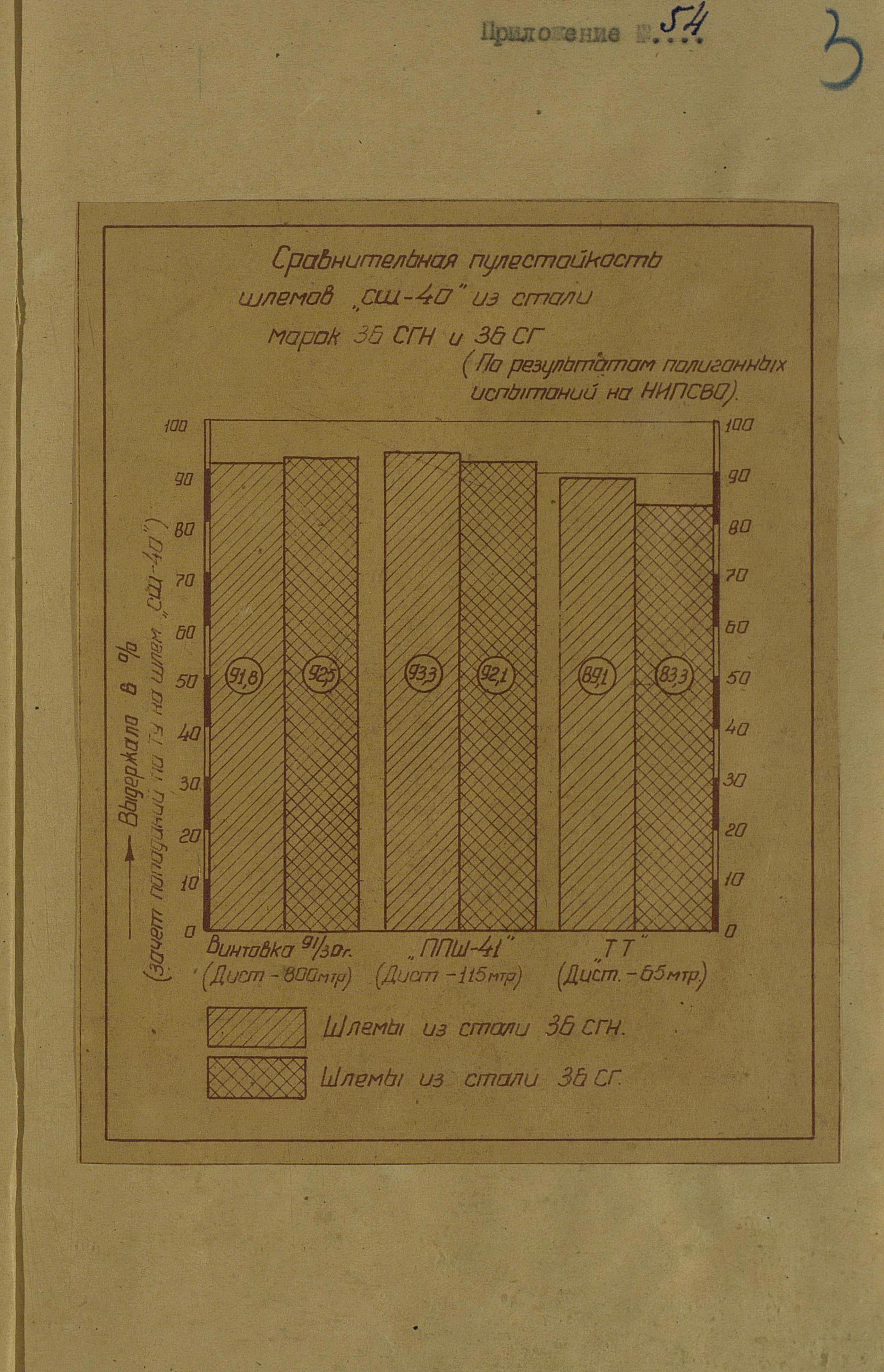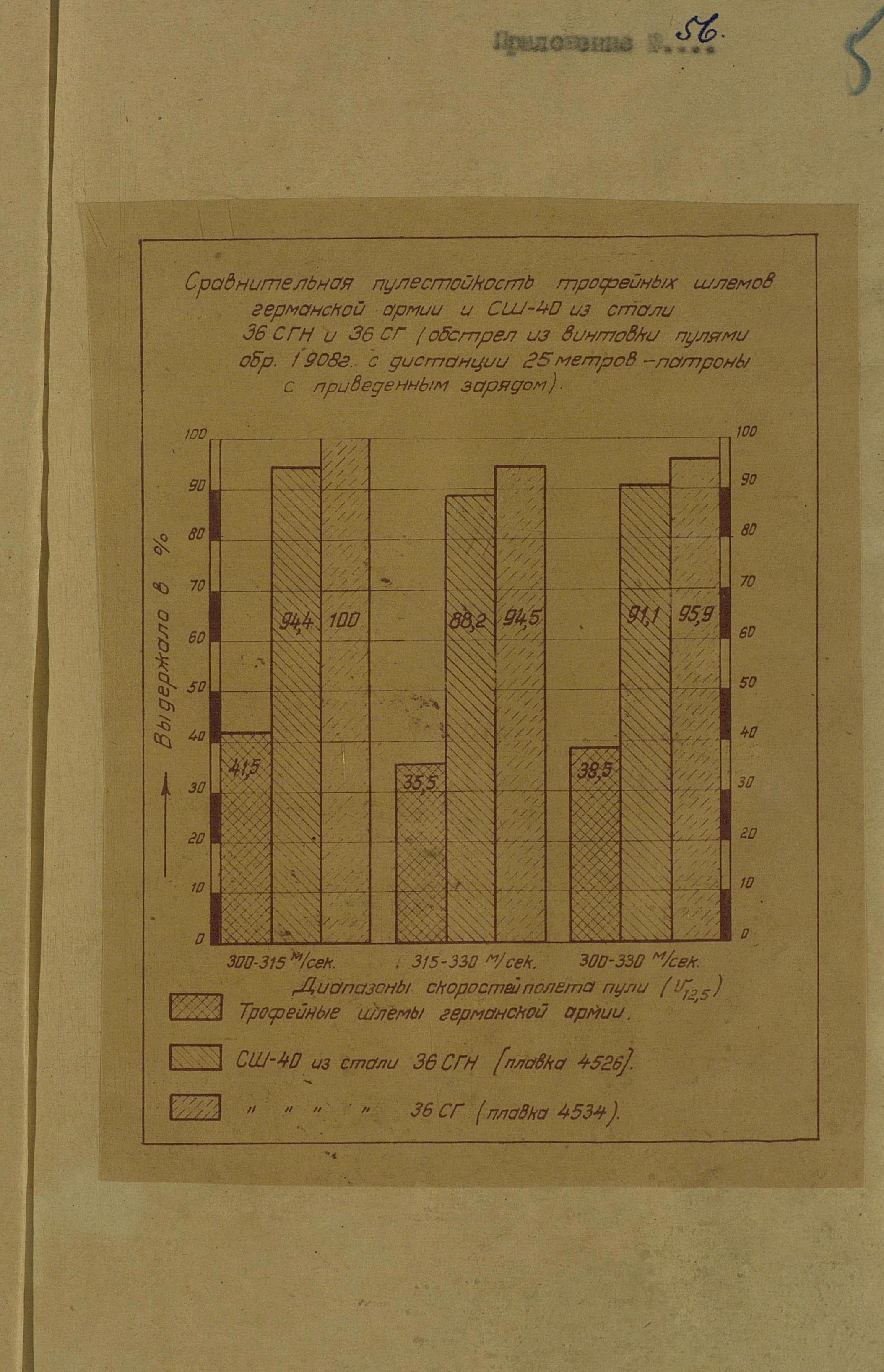 Диаграммы и фотографии с испытаний стальных шлемов отечественного и немецкого производства. 1943 год