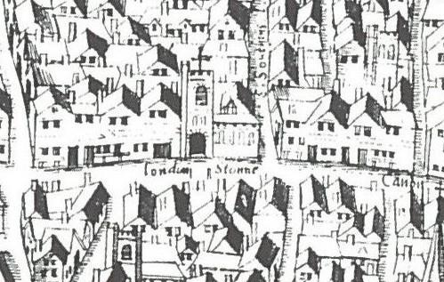 Камень на плане Лондона (в центре, в церкви Св.Светина, уничтоженной немецкими бомбардировками в 1940)