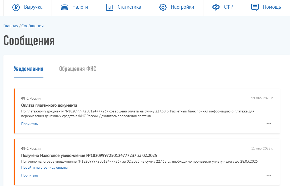 Потом эти чеки будут в «Истории операций» в конце страницы, также вам в приложении будут приходить письма о начисленных налогах.
