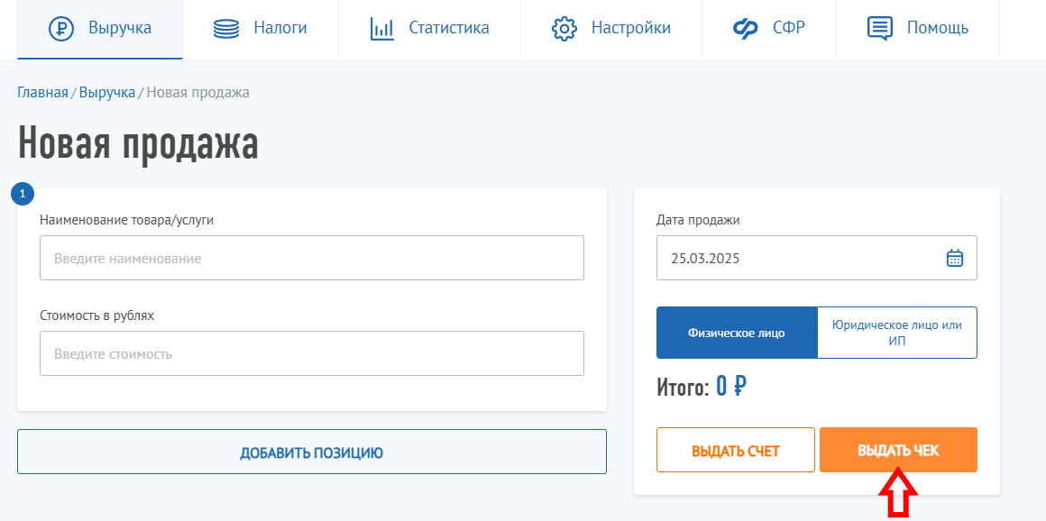 В приложении «Мой налог» входите во вкладку «Моя выручка».