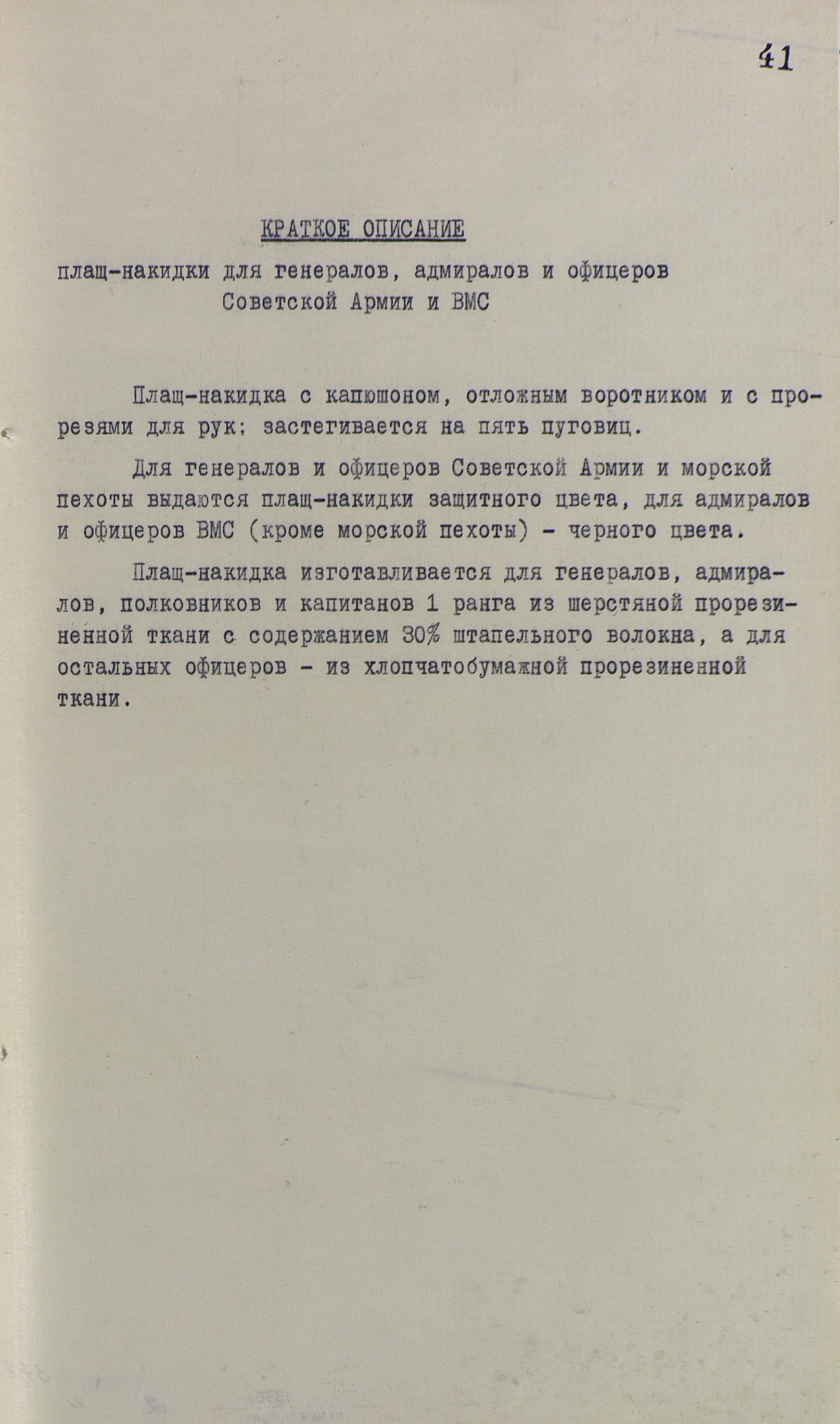 Но, прочитав краткое описание плащ-накидки для генералов, адмиралов и офицеров ВМС, я понял причину, по которой за этот предмет требовали оплату: состав ткани. Если для генералов, адмиралов, полковников и капитанов 1 ранга плащ-накидка изготавливалась из дорогой шерстяной прорезиненной такни с содержанием 30% штапельного волокна, то для изготовления офицерской плащ-накидки использовалась более дешёвая хлопчатобумажная ткань.